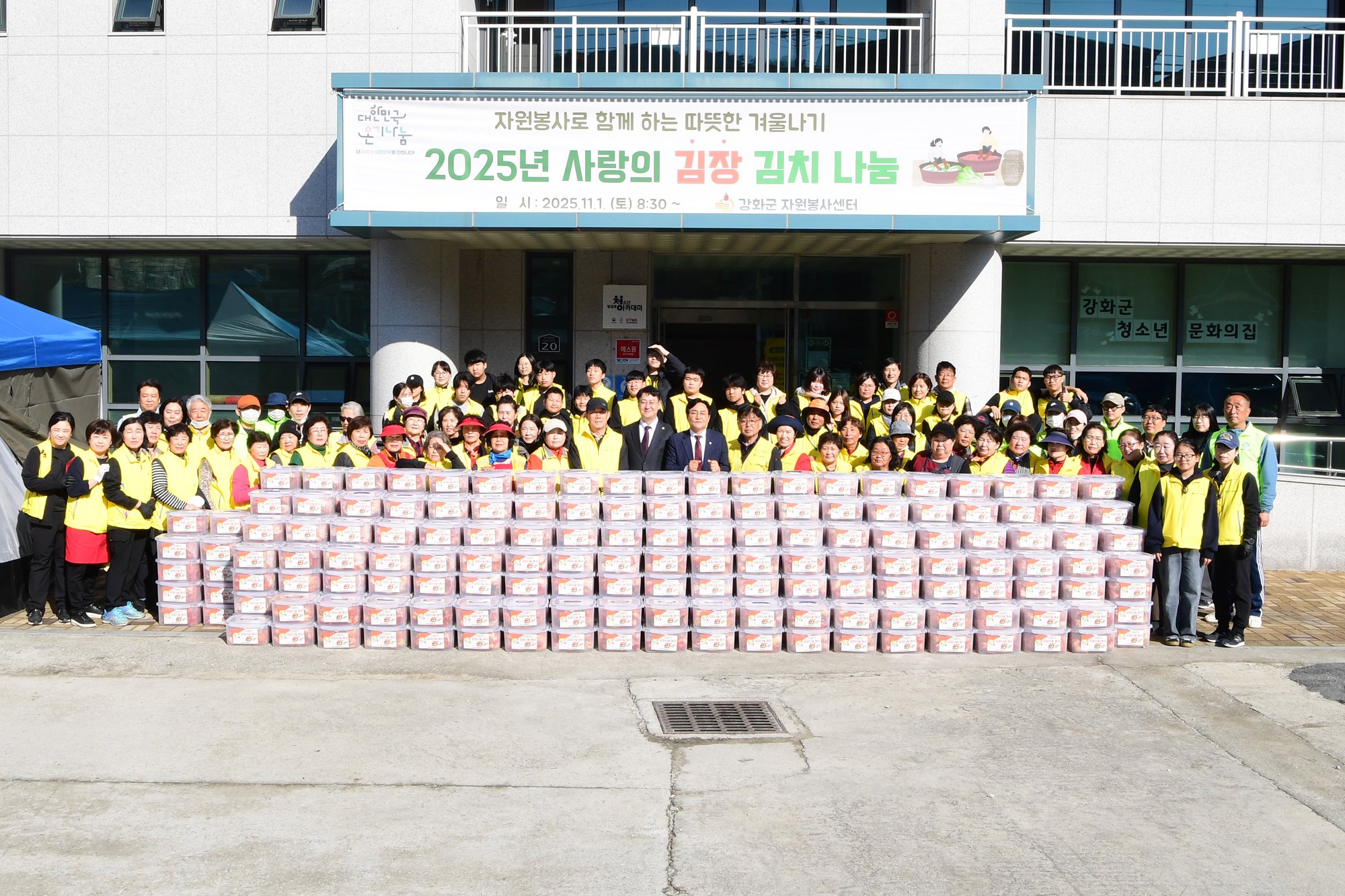 강화군자원봉사센터 사랑의 김장김치 함께 나눠요! [PEDIEN] 강화군에 따뜻한 나눔의 손길이 이어졌다. 강화군자원봉사센터는 지난 1일, 청소년 문화의 집 마당에서 사랑의 김장김치 나눔 행사를 개최했다.이번 행사는 독거노인과 취약계층의 따뜻한 겨울나기를 지원하기 위해 마련됐다. 읍·면 자원봉사 상담가를 비롯해 각종 단체, 중·고등학생, 개인 봉사자 등 100여 명이 참여해 구슬땀을 흘렸다.쌀쌀한 날씨 속에서도 봉사자들은 한마음으로 김치를 담갔다. 정성껏 담근 김장김치 10L 500여 통은 읍·면사무소를 통해 관내 독거노인, 장애인 가구 등에 전달될 예정이다.한양수 센터장은 매년 김장 행사에 적극적으로 참여해주는 봉사자들에게 감사의 마음을 전했다. 또한, 자원봉사를 통해 이웃들이 따뜻한 겨울을 보내기를 희망하며, 앞으로도 다양한 봉사활동을 지원하겠다고 밝혔다.이번 김장 나눔 행사는 다양한 세대가 함께 이웃사랑을 실천하는 뜻깊은 계기가 됐다. 강화군자원봉사센터는 앞으로도 지역사회에 온기를 더하는 다양한 활동을 펼칠 계획이다. -