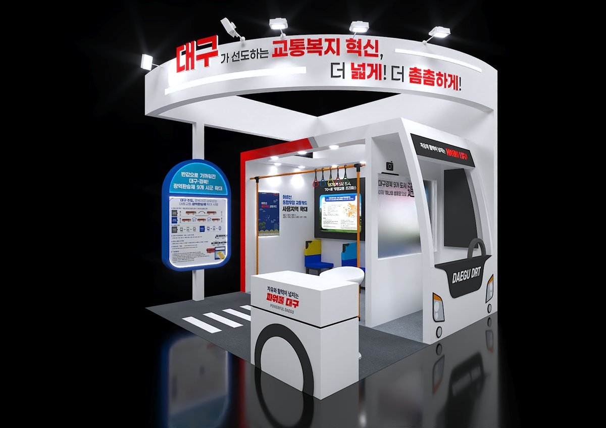 대구 전시관 조감도 대구광역시 제공 [PEDIEN] 대구시가 12월 3일부터 5일까지 청주 오스코에서 열리는 ‘2025 대한민국 정부혁신 박람회’에 참가해 초광역 대중교통 혁신 성과를 선보인다.행정안전부가 주최하는 이번 박람회는 ‘AI × 정부혁신 = 국민행복 2’라는 슬로건 아래 157개 기관이 참여하는 대규모 행사다. 대구시는 이번 박람회에서 대중교통 혁신을 주제로 전시관을 운영한다.대구시의 전시관은 ‘대구가 선도하는 교통복지혁신, 더 넓게! 더 촘촘하게!’라는 주제로 꾸며진다. 핵심 내용은 △광역환승제 △어르신 무임교통카드 상호 이용 △대구형 DRT 등 3가지 교통 혁신 성과다.특히 대구시는 대구와 경북 8개 지자체를 연결하는 광역환승제를 통해 대중교통 요금을 50% 절감하는 효과를 거두고 있다. 또한 70세 이상 어르신은 대구와 경북 8개 지자체에서 대중교통을 무료로 이용할 수 있도록 했다.대중교통 취약지역인 북구 연암서당골, 수성구 범물동에는 수요응답형 교통체계를 확대 운영하여 교통 편의를 높이고 있다.대구시는 관람객들이 이러한 교통복지 혁신을 쉽고 재미있게 이해할 수 있도록 실제 버스 내부를 축소 구현한 모형 부스를 설치하고, 대형 모형 카드, 정책 안내 패널, 퀴즈 이벤트존 등 다양한 체험형 콘텐츠를 제공한다.오준혁 대구광역시 기획조정실장은 “대구·경북 초광역권이 함께 만들어 가고 있는 대중교통 혁신 모델을 국민들에게 소개할 수 있어 매우 뜻깊다”고 밝혔다.이어 “이번 박람회 참가를 계기로 대구 시민들이 실제로 체감하고 있는 이동권 향상과 교통복지 혁신 성과를 널리 공유해 전국적인 확산의 계기가 되기를 기대한다”고 덧붙였다. -