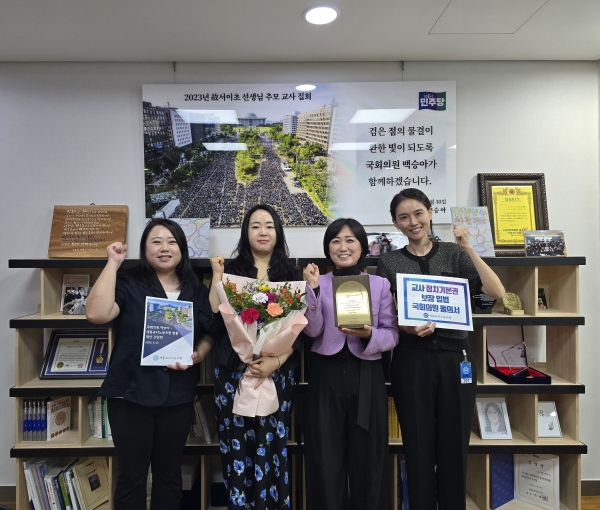 세종교사노조, 백승아 국회의원과 교육 현안 정책 간담회 개최 [PEDIEN] 세종교사노동조합은 9월 22일 제22대 국회의원이자 더불어민주당 교육특별위원장인 백승아 의원실을 방문해 교육 현장의 목소리를 전달하고 정책 개선 방안을 논의하는 간담회를 진행했다. 이 자리에서 세종교사노조는 세종 지역 교사들을 대표해 백승아 의원에게 감사패와 꽃다발을 전달하며 교사 출신 국회의원으로서 교육 현장을 위해 기울여온 노고에 감사의 뜻을 전했다. 세종교사노조 정애리 수석부위원장은 “교사 출신인 백승아 의원이 자랑스럽고 든든하다”며 “교사들의 권익 보호와 근무 여건 개선에 실질적인 기여를 해주신 데 대한 감사의 마음을 담아 감사패를 드렸다”고 밝혔다. 이어진 간담회에서는 △교권보호위원회 제도 개선 △학생맞춤통합지원법 시행 확대 △학교안전공제회 운영 현황과 개선 방안 △이어드림 시스템의 문제점과 개선 방향 △교사의 정치적 기본권 회복 등 교육계의 주요 현안을 중심으로 심도 깊은 논의가 이어졌다. 백승아 의원은 세종교사노조의 제안과 현장의 목소리를 경청한 뒤, “교사들이 교육 본연의 업무에 온전히 집중할 수 있도록 교권 보호를 강화하고 학생 맞춤형 지원 정책이 현장에서 실효성 있게 작동할 수 있도록 최선을 다하겠다”고 강조하며 적극적인 협력 의지를 밝혔다. 세종교사노조는 이번 간담회를 계기로 교육 현장과 정치권 간 소통의 폭을 한층 넓히고 교권 보호와 교육 환경 개선을 위해 지속적으로 협력해 나갈 계획이다. -