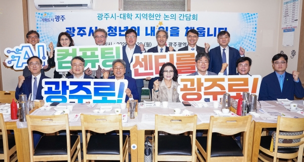 강기정 시장-대학 총장들, 대학발전 간담회 [PEDIEN] 광주시와 광주지역 대학 총장들이 대학 발전 방향과 청년정책 성과를 공유하고 앞으로 협력방안 등을 논의했다. 광주광역시는 29일 서구 치평동 한 음식점에서 광주지역 12개 대학 총장들과 ‘오찬 간담회’를 열고 지역 대학 발전 방향과 협력 방안에 대해 논의했다. 또 광주만의 청년정책을 공유하고 국가AI컴퓨팅센터 유치에 대해 힘을 모으기로 했다. 이날 간담회에는 강기정 시장을 비롯해 전남대, 조선대, 호남대, 광주대, 남부대, 광주교대, 광주여대, 송원대, 광주과학기술원, 광주보건대, 동강대, 기독간호대 총장이 참석했다. 간담회에서는 △전남대·조선대-조선간호대 글로컬대학 선정 의미와 향후 추진 계획 △대통령상 수상 광주시 청년정책 공유 △국가AI컴퓨팅센터 광주 유치를 위한 대학생 서명운동 협조 요청 등이 주요 안건으로 논의됐다. 광주시는 이날 간담회에서 제안된 의견을 정책에 적극 반영해 대학과 청년이 함께 성장할 수 있는 협력체계를 강화하고 청년들이 지역에 정착할 수 있는 환경을 지속 조성할 계획이다. 강기정 광주시장은 “전남대학교와 조선대학교의 글로컬대학 선정은 지역이 한 단계 도약할 기회를 얻은 성과”며 “이는 광주시와 대학 간 긴밀한 협력과 노력의 결과라며 앞으로도 대학 경쟁력 강화와 청년인재 육성에 광주시 역량을 집중하겠다”고 밝혔다. 강 시장은 이어 “광주 청년정책의 대통령상 수상은 청년이 머물고 싶어 하는 도시로 나아가고 있음을 보여준다”며 “2조5000억원 규모의 국가AI컴퓨팅센터 유치도 미래산업 육성의 핵심 과제인 만큼 대학과 학생들이 힘을 모아준다면 광주가 대한민국 AI 중심도시로 확실히 자리매김할 것”이라고 강조했다. 이날 참석한 대학 총장들은 “지역 혁신성장과 청년일자리 창출 등을 위해 AI컴퓨팅센터는 반드시 광주에 유치돼야 한다고 생각한다”며 “서명운동에 적극 동참해 유치 성사를 위해 힘을 모으겠다”고 한목소리를 냈다. 올해 글로컬대학으로 선정된 전남대 이근배 총장과 조선대 김춘성 총장은 “앞으로 5년간 지역산업과 글로컬 추진과제를 촘촘히 연계해 대학에서 배출된 인재가 지역에서 일자리를 갖고 지역을 발전시키는데 기여할 수 있도록 최선을 다하겠다”고 밝혔다.