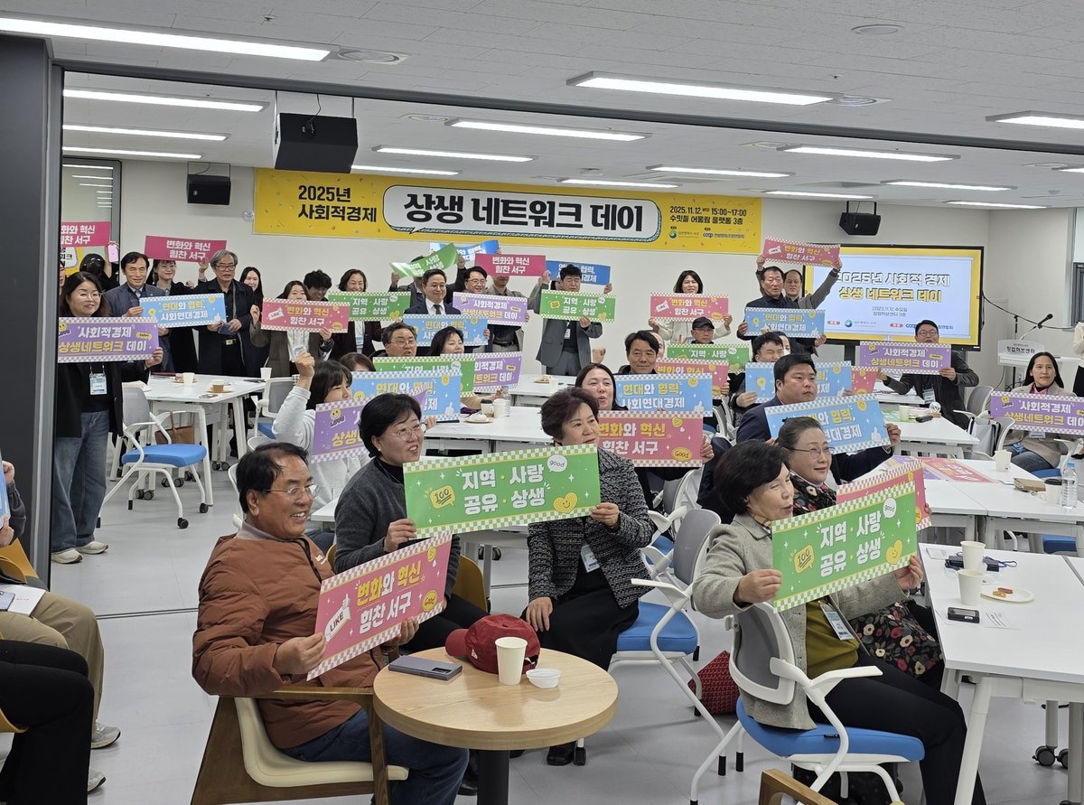 13일 서구창업허브센터에서 진행된 사회적경제 상생 네트워크 데이 행사 장면 [PEDIEN] 대전 서구는 서구창업허브센터에서 ‘2025년 사회적경제 상생 네트워크 데이’ 행사를 개최했다고 14일 전했다.이번 행사는 관내 사회적기업, 마을기업, 협동조합 종사자 80여 명이 참여해, 한해 성과를 공유하고 발전 방향을 모색하는 자리로 마련됐다.사회적기업진흥원의 사회적가치지표 측정 및 활용 방안 안내, 한남대학교 사회혁신성장지원센터의 ‘사회연대경제의 비전과 전망’ 강연은 실무 역량 강화에 도움이 되는 내용으로 참석자들의 큰 호응을 얻었다. 이어 우수기업 3개 사의 사례 발표와 기업 간 정보 및 협력 방안을 논의하는 자리가 이어졌으며, 뤼미에르 현악 4중주단의 축하공연이 펼쳐지기도 했다.서구는 △지역문제 해결사업 △SNS 시민체험단 운영 △방송광고 지원사업 △사회적경제 장터 △사회적경제지원센터 운영 등 사회적경제 활성화 사업의 주요 성과를 공유하고, 내년도 추진 계획을 소개했다.한 참석자는 “직접 만나 의견을 나눌 수 있어 매우 유익했다”며 “이런 교류 기회가 정례화되면 기업 성장에 큰 도움이 될 것”이라고 말했다.서철모 청장은 “사회적경제기업 간의 교류와 협력은 지역경제의 지속 가능성을 높이는 중요한 기반”이라며 “앞으로도 네트워크 활성화를 지원해 건강한 사회적경제 생태계를 조성하겠다”고 말했다. -