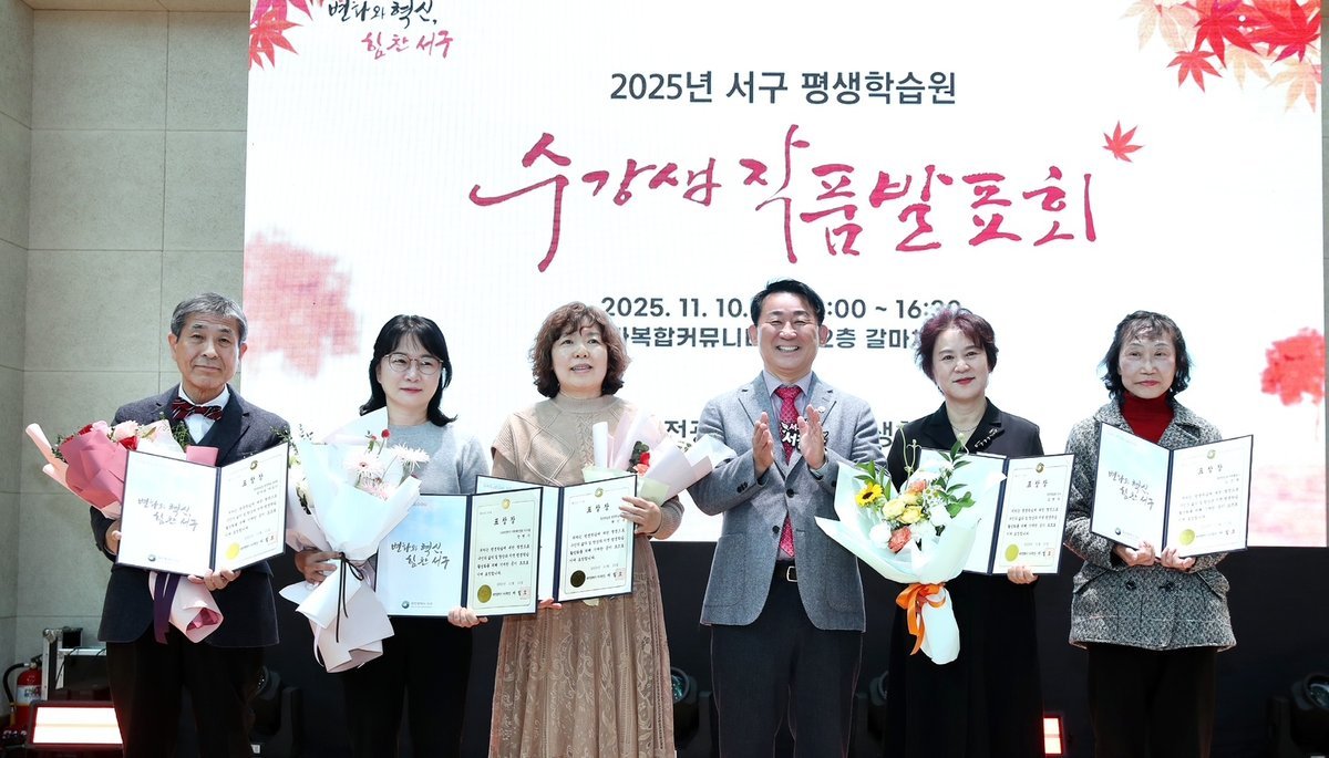 2025년 서구 평생학습관 수강생 작품 발표회 장면 [PEDIEN] 대전 서구 평생학습원이 갈마복합커뮤니티센터에서 수강생 작품 발표회를 개최해 나흘간의 축제를 성황리에 마무리했다. 이번 발표회는 수강생들의 학습 성과를 공유하고 지역 주민들의 참여를 확대하기 위해 마련됐다.이번 행사에는 500명이 넘는 수강생과 주민들이 참여하여 평생학습의 열기를 실감케 했다. 발표회는 공연 발표, 작품 전시, 특별 강좌 등 다양한 프로그램으로 구성되어 참가자들의 만족도를 높였다.갈마체육관에서는 시니어 라인댄스를 포함한 17개 팀이 무대에 올라 열정적인 공연을 선보였다. 수강생들은 그동안 갈고닦은 실력을 뽐내며 관객들의 뜨거운 박수를 받았다.평생학습관에서는 데생, 스케치 등 11개 강좌에서 출품한 150여 점의 작품이 전시됐다. 3~4층 복도와 로비는 수강생들의 창의적인 작품으로 가득 채워져 방문객들의 눈길을 사로잡았다.이와 함께 '두 시간에 마스터하는 챗GPT' 등 4개의 특강과 일일 수업이 진행되어 수강생과 방문객들에게 폭넓은 학습 기회를 제공했다.서철모 서구청장은 “이번 발표회를 통해 지역의 평생학습 활동을 체계적으로 소개할 수 있었다”며, “앞으로도 다양한 평생교육 프로그램을 마련하여 주민들의 지속적인 학습 참여를 지원하겠다”고 밝혔다. 서구는 앞으로도 평생학습을 통해 주민들의 삶의 질을 향상시키고, 함께 성장하는 행복 공동체를 만들어나갈 계획이다. -