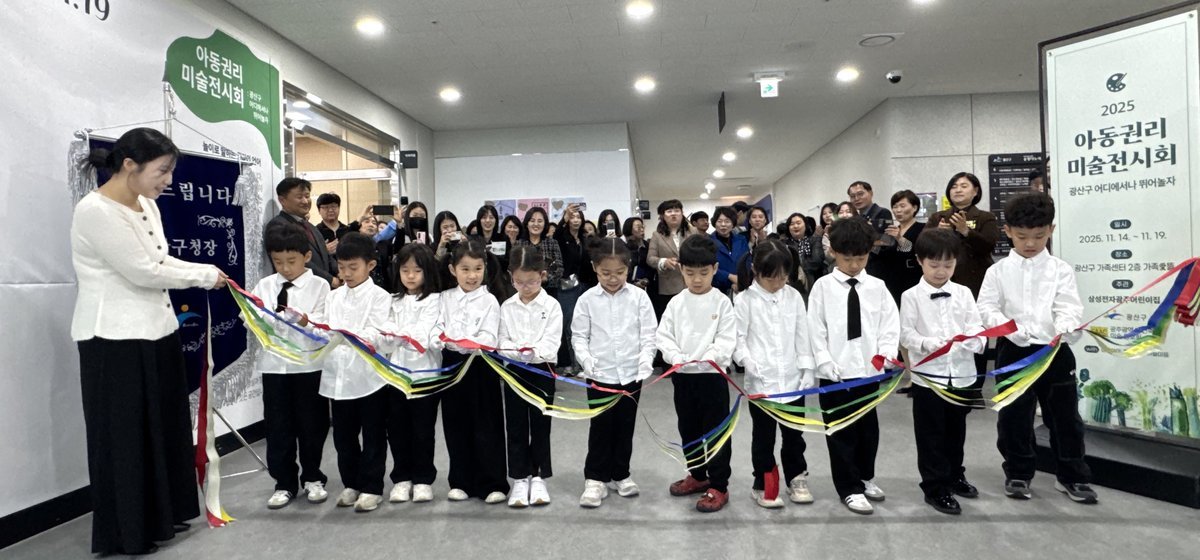 아동권리 미술전시회 개관식 (광주광산구 제공) [PEDIEN] 광주 광산구가 19일까지 송정다누리복합커뮤니티센터 2층 ‘가족愛뜰’에서 ‘아동권리 미술전시회’를 개최한다.이번 전시는 아동권리주간을 맞아 아이들의 놀이와 참여를 통해 바라본 광산구의 모습을 작품으로 표현한 자리다.특히 어린이들의 시선이 머문 지역의 공간과 이야기를 예술로 담아내 눈길을 끈다.전시는 삼성전자광주어린이집, 광주건축사미술동호회가 공동 주최했으며 삼성전자광주어린이집과 이음어린이집 등 4개소의 아동과 교직원, 건축사들이 함께했다.개관식에서는 아이들이 직접 전시 해설사로 나서 자신들의 작품을 소개하며 전시의 의미를 한층 깊게 했다.특히 △1913송정역시장 △경암근린공원 △마한유적지 등 광산구의 대표적인 장소가 아이들의 눈으로 본 ‘행복한 광산구의 순간’으로 작품에 섬세하게 담아냈다.박병규 광산구청장은 “이번 전시는 아동이 예술을 통해 자신의 권리를 스스로 표현하고 지역사회가 그 목소리에 귀 기울이는 자리”며 “아이들이 마음껏 꿈꾸고 표현할 수 있는 환경을 함께 만들어가는 출발점이 되길 바란다”고 전했다. -