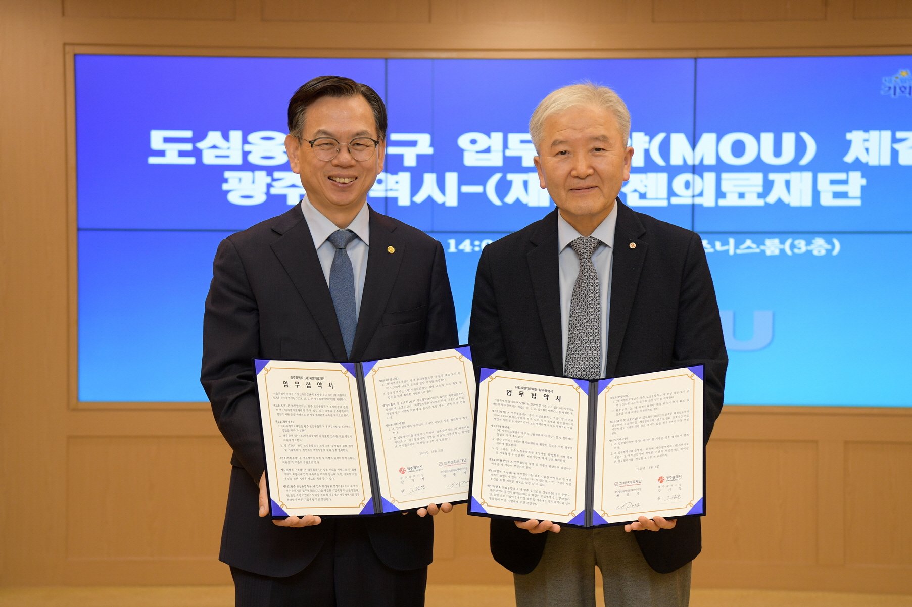 광주_도심융합특구_업무협약(사진제공=광주광역시) [PEDIEN] 광주시가 상무지구 일원에 조성 중인 ‘광주도심융합특구’에 첫 기업을 유치하는 등 사업 추진에 속도를 내고 있다.광주광역시는 6일 시청 비즈니스룸에서 재단법인 씨젠의료재단과 ‘광주도심융합특구 조성사업 관련 업무협약’을 체결했다.이날 협약식에는 고광완 행정부시장과 박창수 씨젠의료재단 광주호남검사센터 대표원장이 참석했다.협약에 따라 씨젠의료재단은 특구 내 3000평 규모 부지에 투자를 하고 광주시는 행정적 지원을 하게 된다.광주시는 업무협약을 체결한 기업에 대해 도심융합특구 내 용지 분양 때 우선 입주권을 부여하기로 했으며 재단은 해당 부지에 의료·바이오 산업 관련 시설 건립을 추진할 계획이다.광주시는 이번 협약을 계기로 도심융합특구의 초기 기업 유치 기반을 마련하고 의료 등 미래 전략산업 중심의 혁신 클러스터를 조성할 방침이다.특히 도심융합특구 내 입주기업에는 △국·공유지 사용료 감면 △개발부담금 감면 △인허가 신속처리 지원 △기반시설 조성 지원 △기업 맞춤형 투자상담 및 보조금 연계 등 다양한 행정적 지원을 병행한다.씨젠의료재단은 1990년에 설립된 국내 최대 규모의 임상검사 전문기관으로 첨단 분자진단기술을 기반으로 국내외에서 활발히 활동하고 있다.특히 2020년 코로나19 팬데믹 당시 진단키트 개발과 공급으로 세계적 인지도를 높였다.고광완 행정부시장은 “우수 기업 유치를 확대하고 혁신 인프라 조성과 주거·문화가 어우러진 도시공간을 재창출해 청년이 머물고 기업이 성장하는 도심융합특구를 완성하겠다”고 밝혔다.‘광주 도심융합특구 조성사업’은 상무지구 일원 85만㎡ 부지에 산업·주거·문화 기능이 결합된 고밀·혁신공간을 조성하는 것으로 일자리·삶·여가가 공존하는 ‘직주락 도시공간 구현’을 목표로 하고 있다.이 사업은 2024년 11월 7일 국토교통부로부터 정식 구역 지정을 받은 데 이어 2026년까지 사업 시행자 지정 및 실시계획 수립, 2031년 사업 완료를 목표로 추진 중이다. -