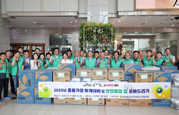 대전 서구 새마을회, 취약계층에 선풍기 등 물품 나눔 [PEDIEN] 대전 서구 새마을지도자협의회는 지난 11일 구청에서 지역 내 취약계층을 대상으로 선풍기 등 냉방 용품, 소화기 등 안전용품 및 에너지 절약을 위한 LED 전등 나눔 행사를 진행했다고 밝혔다. 이날 행사는 새마을운동의 나눔과 봉사 정신을 실천하고 무더위 및 안전에 취약한 어르신 및 저소득 가정에 실질적인 도움을 주기 위해 마련됐다. 행사에 참여한 새마을지도자들은 직접 가정을 방문해 물품을 전달하고 안부를 살피는 등 따뜻한 이웃 사랑을 실천했다. 서철모 서구청장은 “작은 정성이지만 폭염 속 이웃들에게 큰 위로와 도움이 될 것”이라며 “앞으로도 지역사회 곳곳에서 따뜻한 나눔이 이어지길 기대한다”고 말했다. 남기정 서구 새마을지도자협의회장은 “어려운 이웃들에게 안전하고 시원한 여름을 선물할 수 있어 보람을 느낀다”며 “앞으로도 새마을지도자들이 지역사회의 든든한 이웃이 되겠다”고 밝혔다. 한편 서구는 앞으로도 민간단체와 협력해 복지 사각지대를 해소하고 촘촘한 지역복지 안전망을 구축해 나갈 계획이다. -