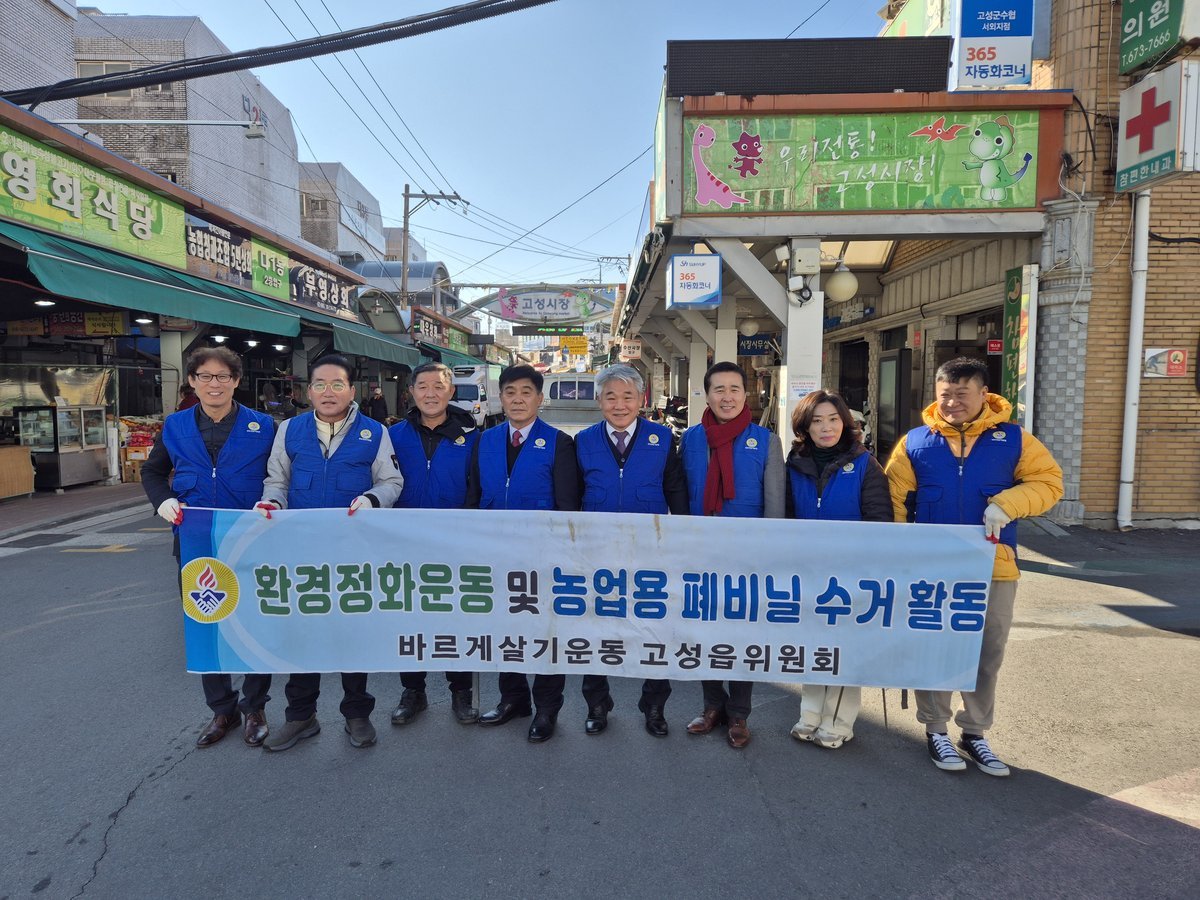 바르게살기운동 고성읍위원회, 고성시장 환경정화 활동 펼쳐 (경남고성군 제공) [PEDIEN] 바르게살기운동 고성읍위원회가 18일 고성시장 일대에서 환경정화 활동을 진행했다.‘바르게 행복홀씨사업’의 일환으로 추진된 이번 활동은 쾌적한 고성읍을 조성하기 위해 마련됐다.이날 환경정화 활동에는 바르게살기운동 고성읍위원회 위원 10여 명이 참여했다. 추운 날씨 속에서도 위원들은 고성시장 주변에 불법 투기된 쓰레기를 수거하며 구슬땀을 흘렸다.이번 환경정화 활동은 고성시장을 방문하는 주민들과 관광객들에게 깨끗하고 정돈된 고성읍의 이미지를 심어주는 데 기여할 것으로 보인다.김상철 바르게살기운동 고성읍위원장은 “바쁜 일정에도 환경정화활동에 참여해 준 회원들에게 감사하다”며 “앞으로도 지역사회와 주민들에게 도움이 되는 활동을 적극적으로 추진할 계획”이라고 밝혔다.이현주 고성읍장은 “살기 좋은 고성읍을 만들기 위해 힘써주신 바르게살기운동 고성읍위원회 회원들에게 감사드린다”며 “앞으로도 지역 내 사회단체와 지속적으로 협력하여 주민이 행복한 고성읍을 만드는 데 최선을 다하겠다”고 말했다. -