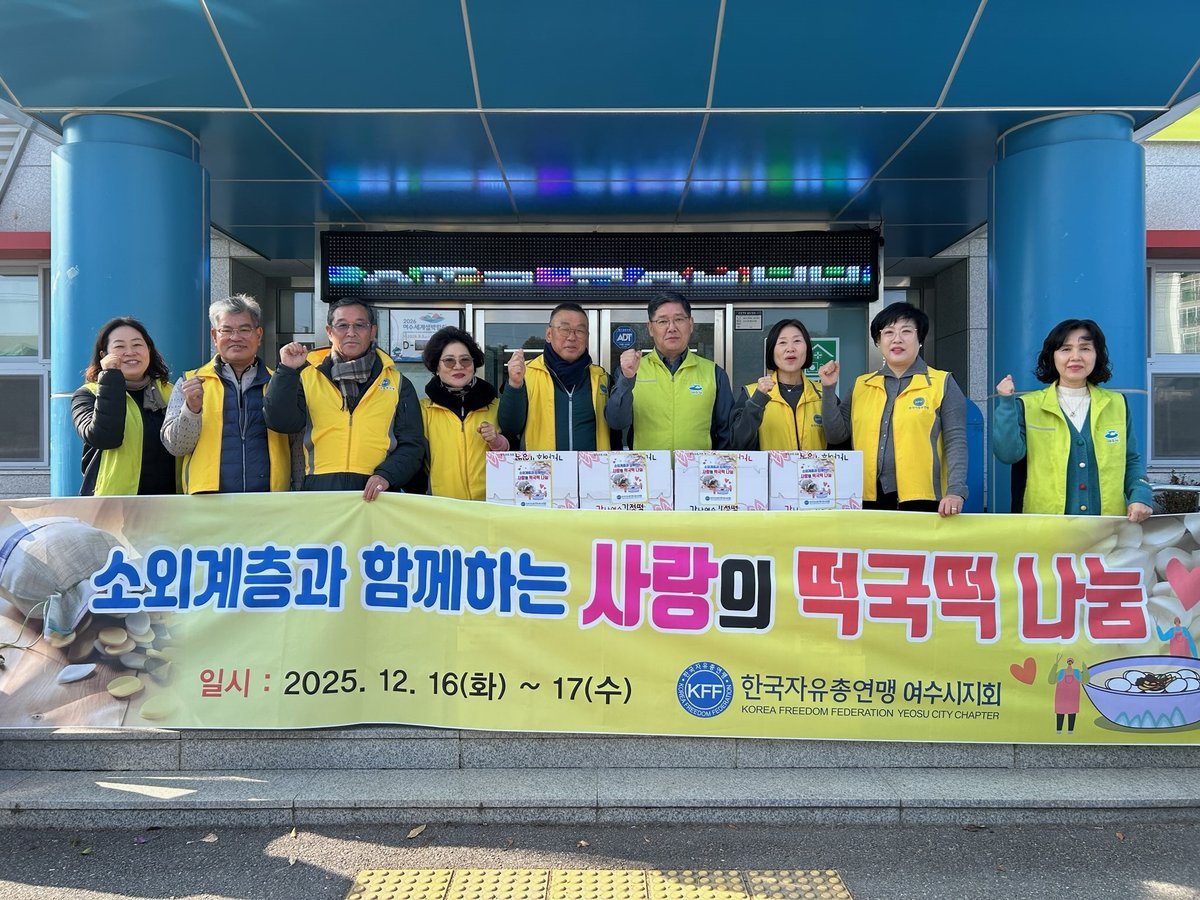 한국자유총연맹 여수시지회, 소라면에 100만원 상당 떡국떡 전달