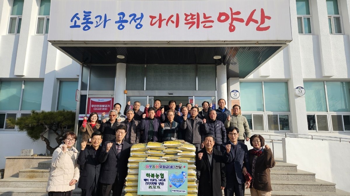 하북농협, 하북면에 이웃돕기 성품 기탁 (양산시 제공) [PEDIEN] 양산 하북농협이 지난 19일 하북면행정복지센터에 관내 어려운 이웃들을 위해 나눠달라며 백미 10kg 140포를 기탁했다.이날 전달식에는 하북농협, 상하북종합사회복지관, 하북면이장협의회 등 30여명이 참석한 가운데 진행됐다.박찬언 하북농협장은 “이번 기탁을 통해 어려운 이웃들이 따뜻한 겨울을 보낼 수 있었으면 좋겠다”며 “나눔의 손길이 퍼져나가 관내 온정의 소식이 더욱 많이 전해지길 바란다”고 밝혔다.한편, 이날 기탁된 백미는 상하북종합사회복지관에 전달 및 관내 기초생활수급자 및 복지 사각지대 가구 등 경제적 지원이 필요한 복지 취약계층에 전달될 예정이다.