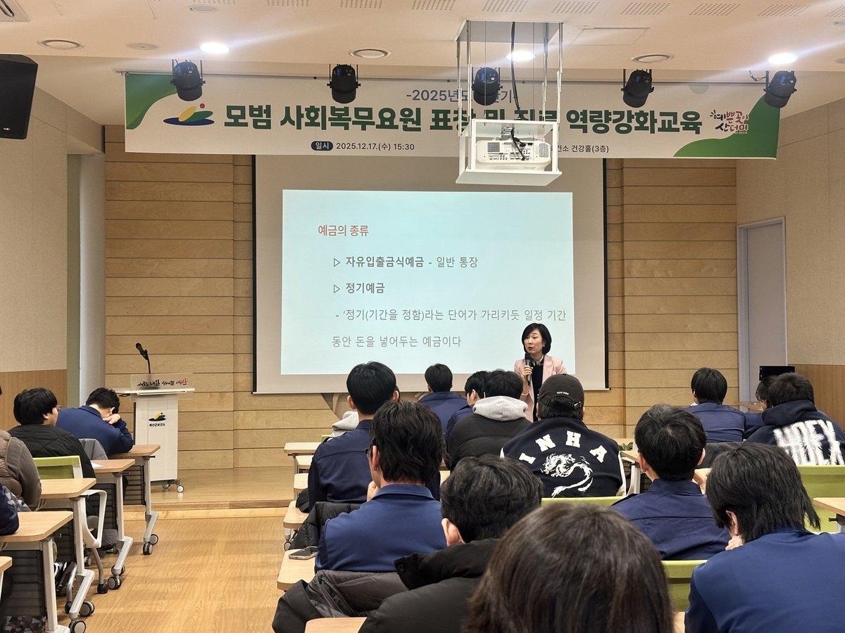 예산군, 하반기 모범 사회복무요원 표창 및 진로역량강화 교육 실시 (예산군 제공) [PEDIEN] 예산군이 관내 사회복무요원들을 대상으로 모범 표창 수여식과 진로역량 강화 교육을 진행했다.이번 행사는 성실하게 복무에 임한 사회복무요원들의 노고를 격려하고, 소집해제 후 사회생활에 필요한 역량을 강화하기 위해 마련됐다.표창은 복무기관장의 추천을 받은 모범 사회복무요원에게 수여됐으며, 표창과 함께 특별휴가 3일이 주어졌다.진로역량 강화 교육은 취업 및 창업 준비를 위한 정보와 금융 상식 교육으로 구성됐다. 전문 강사를 초빙하여 사회복무요원들이 실질적인 도움을 받을 수 있도록 했다.교육에 참여한 한 사회복무요원은 소집해제 이후의 삶을 구체적으로 고민하고 금융 지식을 쌓는 데 도움이 되었다고 소감을 밝혔다.예산군 관계자는 사회복무요원들이 복무 기간 동안 자기계발을 통해 미래를 준비할 수 있도록 지원을 아끼지 않겠다고 밝혔다. 앞으로도 다양한 교육과 지원을 통해 사회복무요원들의 성공적인 사회 정착을 도울 계획이다. -