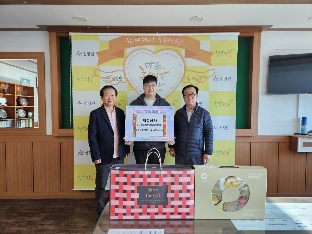 세흥상사, 아산시 신창면 행복키움추진단에 취약계층 위한 선물세트 후원 (아산시 제공) [PEDIEN] 세흥상사는 12월 18일 연말연시를 맞아 신창면 행복키움추진단에 취약계층을 위한 후원물품을 전달했다.이날 전달된 물품은 LG생활건강 선물세트 80개로, 신창면 관내 저소득 취약계층 가구에 전달될 예정이다.이종수 대표는 “연말연시를 맞아 신창면의 어려운 이웃들이 따뜻한 겨울을 보내는 데 조금이나마 도움이 되길 바란다”고 말했다.지민영 신창면장은 “소외감과 외로움을 더 느낄 수 있는 시기에 지역 취약계층을 위해 따뜻한 관심을 보내주셔서 감사드린다”며 “소중한 후원물품이 꼭 필요한 이웃들에게 잘 전달될 수 있도록 하겠다”고 전했다.한편, 세흥상사는 아산시 지역 내 소외계층을 위해 꾸준한 나눔 활동을 이어오며 지역사회 나눔 문화 확산에 앞장서고 있다. -