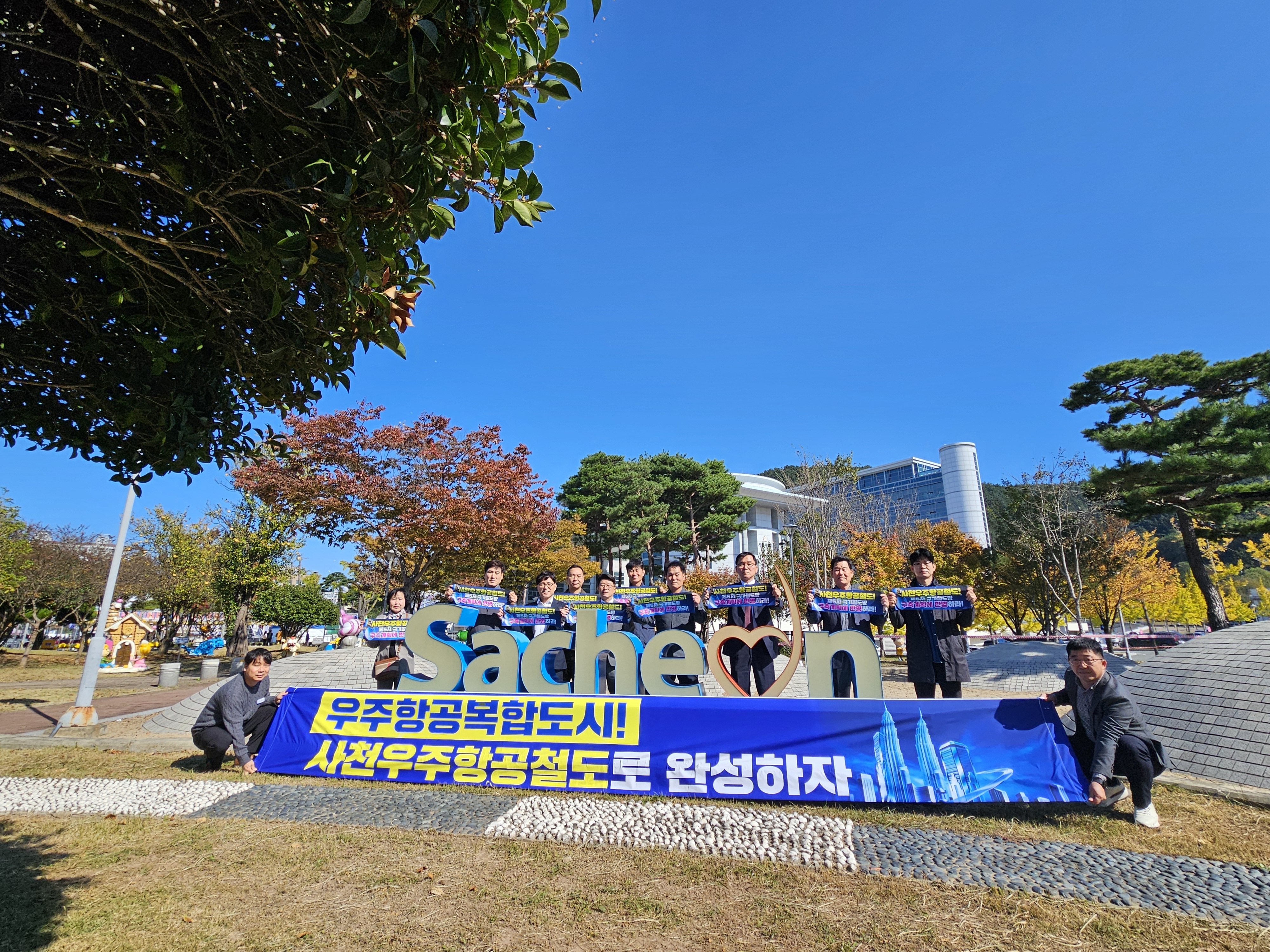 사천읍 기관장협의회, 사천시청 노을광장에서1 [PEDIEN] 사천읍 기관장협의회가 사천시를 우주항공 중심 도시로 만들기 위한 철도망 구축의 필요성을 강조하며 캠페인을 진행했다.지난 10월 31일, 사천시청 노을광장에서 열린 기관장협의회 정기회의에 앞서, 회원들은 '사천우주항공 국가철도'를 '제5차 국가철도망 구축계획'에 반영해달라고 촉구했다.회원들은 '사천우주항공철도! 제5차 국가철도망 구축계획에 반영하라'는 문구가 적힌 현수막을 들고 시민들의 관심과 참여를 호소했다. 진주-사천-삼천포를 잇는 철도망 구축이 사천의 미래를 좌우할 핵심 과제임을 알렸다.기관장협의회 관계자는 우주항공청 개청과 관련 산업 시설 조성에 발맞춰 철도망 구축이 인력과 물류 이동에 필수적인 인프라가 될 것이라고 강조했다.이날 회의에서는 지역 현안 사업과 발전 방안에 대한 논의도 이루어졌으며, 기관장들은 사천의 성장 동력 확보를 위해 지속적인 홍보와 캠페인을 전개할 것을 다짐했다. -