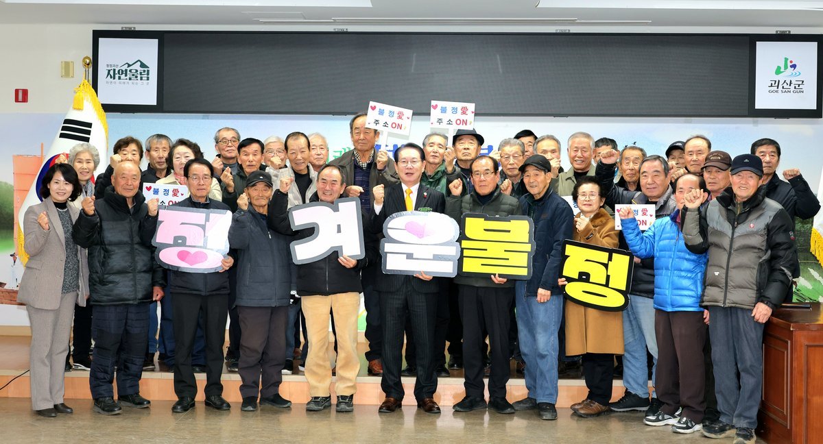 불정면, 노인회장단 간담회 개최 “불정사랑 주소갖기 운동 캠페인 전개” (괴산군 제공) [PEDIEN] 충북 괴산군 불정면은 16일 불정면사무소 회의실에서 노인회장단 간담회를 개최했다.이번 간담회는 송인헌 군수를 비롯한 군 관계자와 관내 경로당 노인회장 35명이 참석한 가운데 어르신 복지 향상과 경로당 운영 개선을 위한 주요 현안을 공유하고, 현장 협조체계를 강화하기 위해 마련됐다.간담회에서는 치매 인식개선 교육과 홍보 사항을 안내하고, 2026년 경로당 급식환경개선 사업을 설명했다.또 경로당 보조금 정산 관련 협조사항을 전달하며 투명하고 효율적인 예산 집행을 위한 유의 사항을 확인했다.간담회 후에는 노인회장단과 직원들이 함께 ‘불정사랑 주소갖기 운동’캠페인을 전개했다.불정면은 캠페인을 통해 지역 주민들의 참여 분위기를 확산시키고 지역 정주 여건과 공동체 활성화에 대한 관심을 높인다는 계획이다.송인헌 군수는 “현장의 의견을 행정에 적극 반영하고, 불정면이 살기 좋은 공동체로 자리 잡도록 필요한 지원을 아끼지 않겠다”고 말했다. -