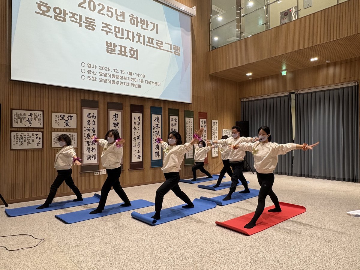 충주 호암직동, 주민자치프로그램 발표회 및 전시회 개최 (충주시 제공) [PEDIEN] 충주 호암직동에서 주민들이 직접 참여하고 만들어가는 특별한 축제가 열렸다. 호암직동 주민자치위원회는 지난 15일부터 20일까지 주민자치프로그램 발표회와 작품 전시회를 개최하며, 주민들의 뜨거운 관심과 참여 속에 성황리에 막을 내렸다.이번 행사는 주민들이 그동안 갈고 닦은 실력을 뽐내고, 서로 소통하며 화합을 다지는 자리로 마련됐다. 특히, 프로그램 발표회에서는 노래교실, 라인댄스, 요가, 통기타 등 다양한 프로그램 수강생들이 무대에 올라 열정적인 공연을 선보였다. 90여 명의 관객들은 뜨거운 박수와 환호로 화답하며 함께 축제를 즐겼다.호암직동행정복지센터 내 전시 공간에는 서예, 캘리그라피, 수채화 등 프로그램 참여자들이 정성껏 만든 작품들이 전시되어 방문객들의 눈길을 사로잡았다. 작품들은 주민들의 예술적 감각과 창의성을 엿볼 수 있게 했다.허학영 주민자치위원장은 “주민들의 적극적인 참여 덕분에 발표회가 성공적으로 마무리될 수 있었다”며 감사의 인사를 전했다. 유의숙 호암직동장은 “이번 행사를 통해 주민자치 프로그램의 성과를 공유하고, 주민 중심의 문화 활동을 확산하는 계기가 되기를 바란다”고 밝혔다. 호암직동은 앞으로도 주민들의 다양한 문화 활동을 적극적으로 지원할 계획이다. -