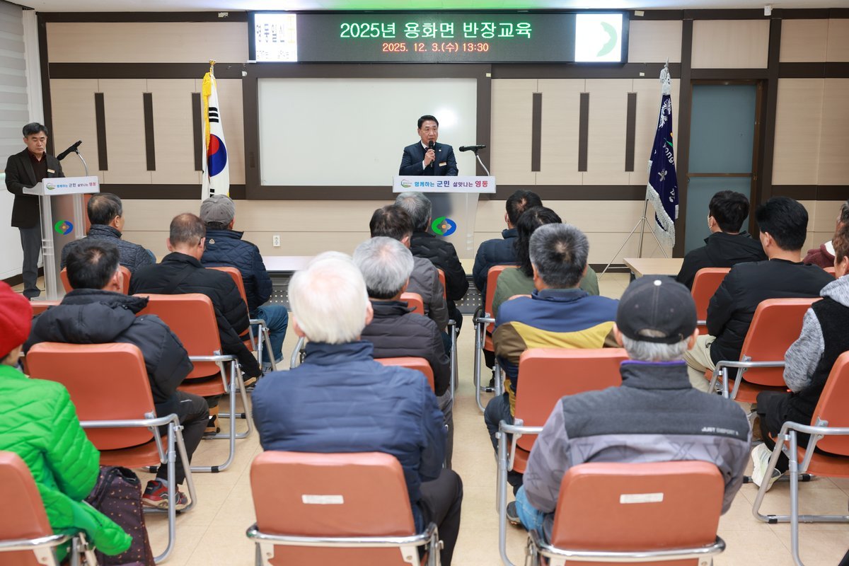 영동군 11개 읍 면 반장 대상 직무교육 마쳐 지난 3일 용화면 반장교육 [PEDIEN] 충북 영동군은 지난 11월 5일 용산면을 시작으로 15일 영동읍까지 한 달에 걸쳐 11개 읍·면의 반장을 대상으로 직무교육을 성공적으로 마쳤다고 밝혔다.이번 교육은 반장의 임무와 역할을 비롯해 영동군 군정현황, 2026년도 주요 사업계획 등을 주제로 진행됐다. 교육은 행정과 주민 사이에서 가교 역할을 수행하는 반장 850여 명을 대상으로 실시됐으며, 각 마을의 지역 발전과 군전 운영에 대한 이해를 높이는 데 중점을 두었다.군은 이번 교육을 통해 군 주요 사업에 대한 이해를 돕고, 군정 운영에 대한 협조를 요청함은 물론, 인구 감소와 지방 소멸 등 다양한 과제 해결을 위해 군민과 함께 최선을 다할 것이라고 밝혔다. 특히 군은 주민 삶의 질 향상을 최우선 과제로 삼아 700여 공직자가 합심해 노력하고 있음을 강조했다. -