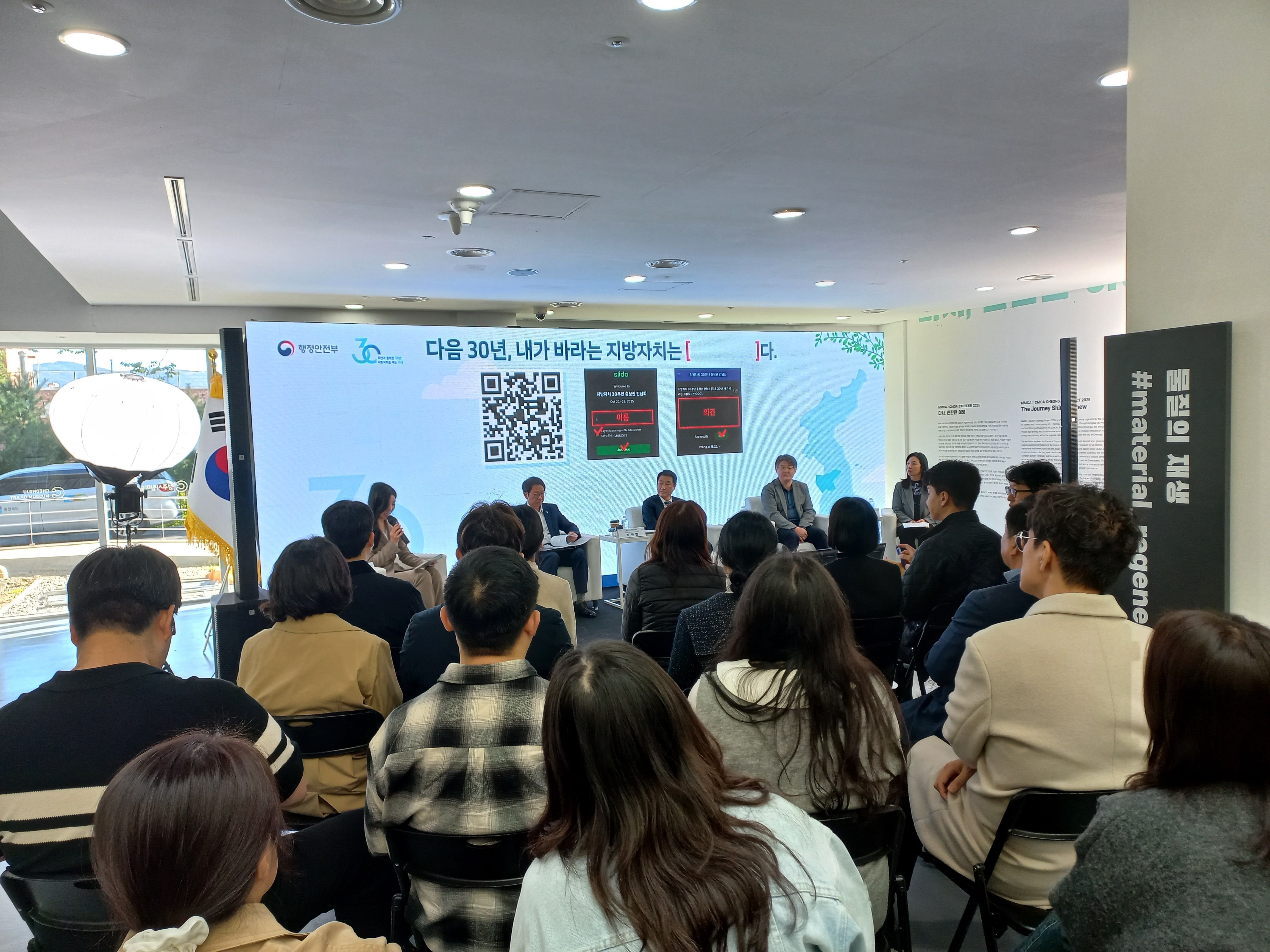 충북학사 재사생 ‘지방자치 30주년 충청권 간담회’ 참여 (충청북도 제공) [PEDIEN] 지방자치 30주년을 기념하는 충청권 간담회가 지난 28일 청주시립미술관에서 열렸다.이번 간담회에는 충북학사 재사생 10여 명을 포함해 청년센터, 청년정책협의체 등 다양한 청년들이 참석하여 '청년이 말하는 지방자치의 미래'라는 주제로 열띤 토론을 펼쳤다.참석자들은 퀴즈, 인터랙티브 프로그램 등 다채로운 활동을 통해 지방자치 제도 개선을 위한 창의적인 아이디어를 제시하고 청년층의 관심을 높이는 시간을 가졌다.특히 서원대학교 차민정 학생은 '다음 30년, 내가 바라는 지방자치는'이라는 참여형 이벤트에 참여하여 현장의 생생한 목소리를 청취하고 향후 지방자치 발전을 위해 도정에 적극적으로 참여할 것을 다짐했다.이번 간담회는 청년들이 지방자치의 미래에 대해 진지하게 고민하고 적극적으로 참여하는 계기가 되었다는 평가다. -