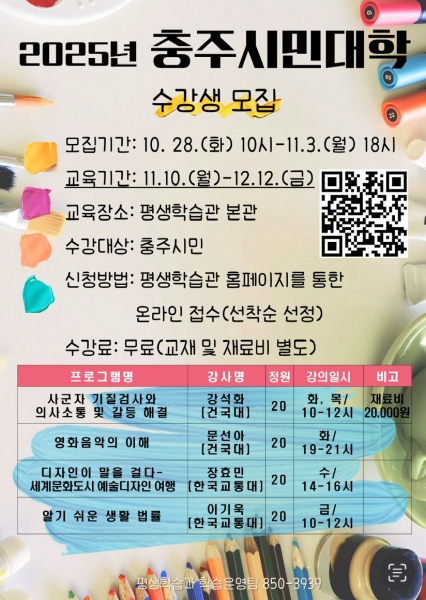 충주시, ‘2025년 충주시민대학’ 수강생 모집