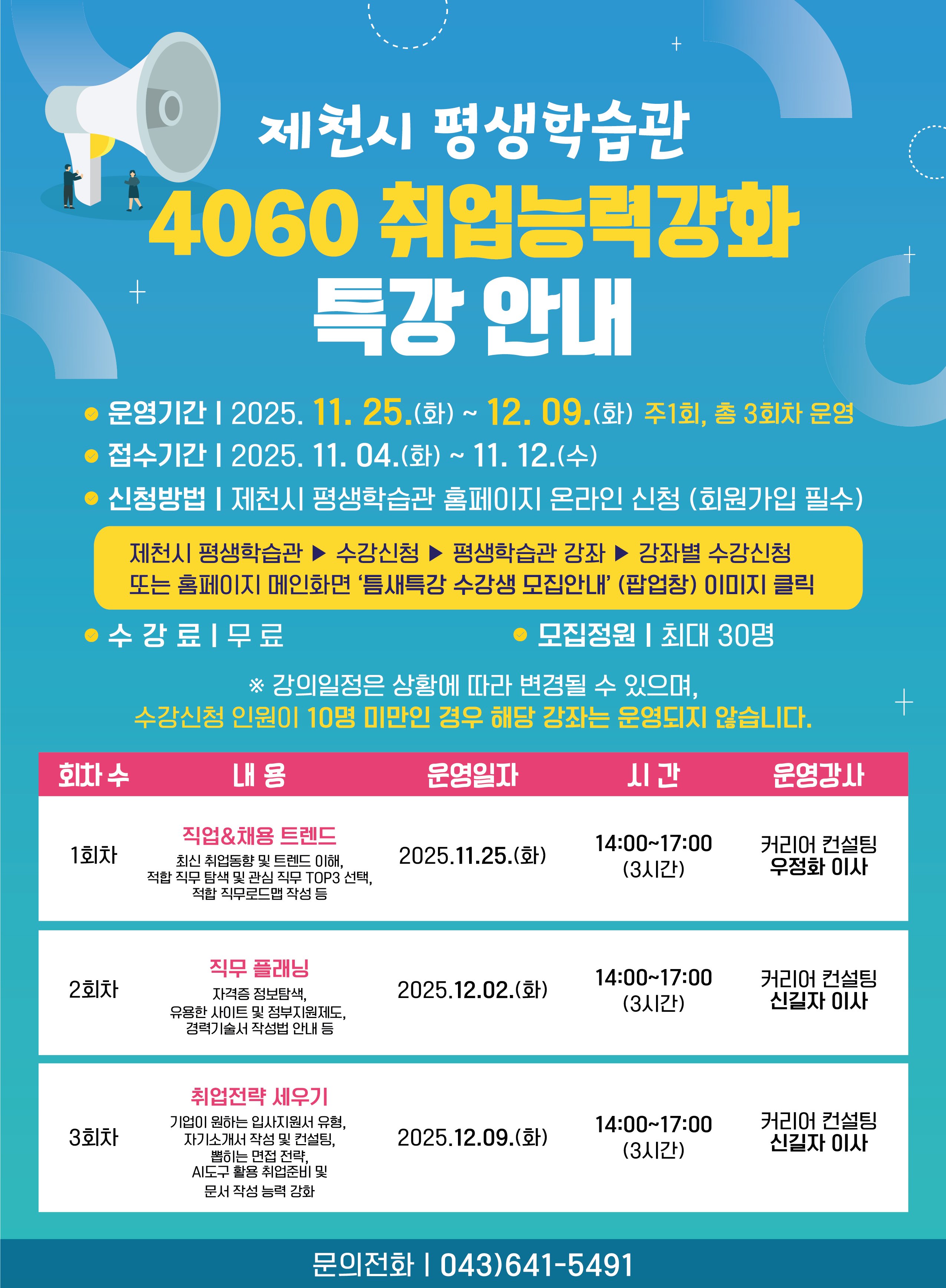 제천시 평생학습관, 실생활 밀착형 틈새특강 운영…11월 24일 개강