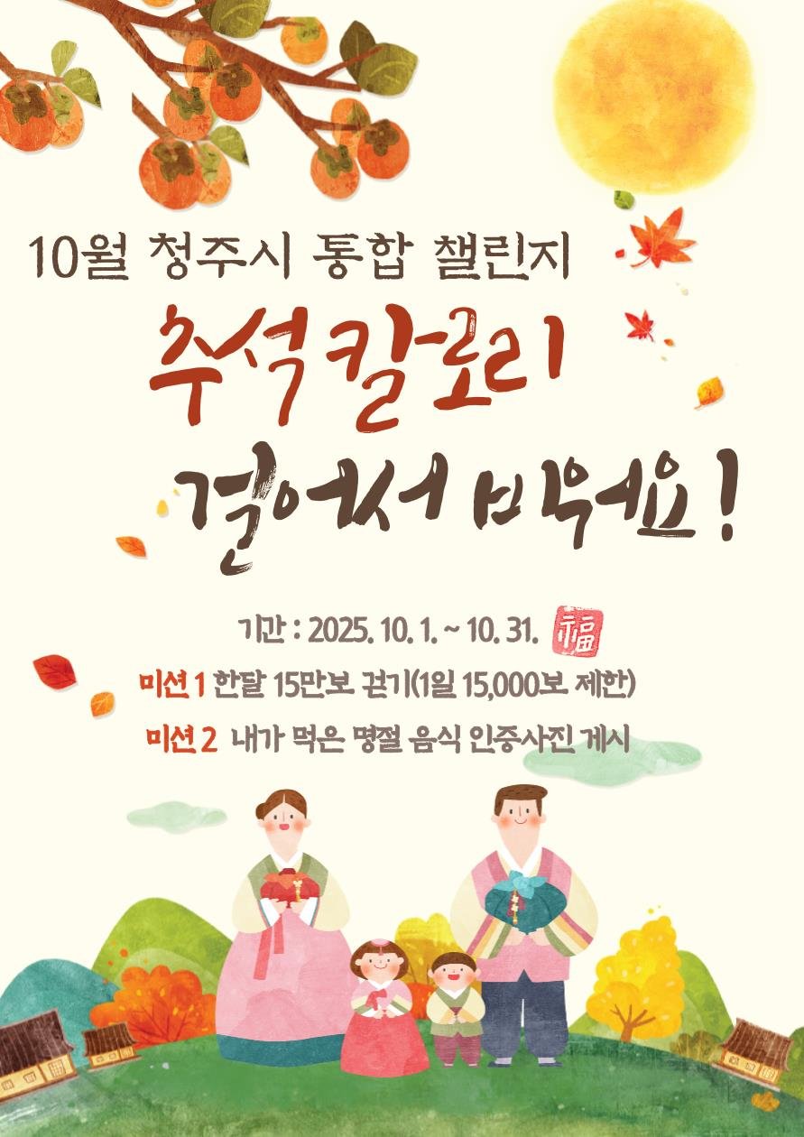 청주시 “10월엔 걷기 실천으로 건강‧환경 지키세요”(추석 칼로리 걸어서 비워요 (사진제공=청주시) [PEDIEN] 청주시가 가을을 맞아 시민들의 걷기 실천을 장려하고 건강 증진을 도모하기 위해 온·오프라인에서 다양한 걷기 행사를 운영한다고 밝혔다. 특히 모바일 걷기 앱 ‘워크온(Walk-On)’을 활용해 시민 누구나 일상 속에서 쉽게 참여할 수 있도록 독려하는 모습이다.시 보건소는 이달 31일까지 추석 명절 기간 늘어난 체중 관리를 돕기 위한 ‘추석칼로리 걸어서 비워요’ 챌린지를 진행한다. 이 챌린지는 청주시민이라면 누구나 참여할 수 있으며, 총 15만 보 걷기(1일 최대 1만 5천 보 인정) 목표를 달성해야 한다. 걷기 목표와 함께 명절 음식 사진 1장을 앱에 게시하면 응모가 완료되며, 응모자 중 800명을 추첨해 모바일 상품권을 증정한다.이와 별도로 상당보건소는 10월 14일부터 28일까지 2주간 치매 극복과 환경 정화를 결합한 비대면 걷기 캠페인을 실시한다. ‘치매극복걷기 캠페인 – 건강한 걸음과 깨끗한 우리 마을’이라는 이름으로 진행되는 이 챌린지는 상당구 공식 커뮤니티 가입 후 참여할 수 있다.참여자는 행사 기간 동안 총 8만 보 걷기(1일 최대 1만 보 인정)와 함께 쓰레기 줍기 활동(플로깅) 인증 사진을 제출해야 한다. 상당보건소는 목표를 달성한 참여자 중 무작위 추첨을 통해 250명에게 7천 원 상당의 모바일 상품권을 제공할 계획이다.시 보건소 관계자는 “이번 걷기 행사가 시민들이 건강한 생활 습관을 형성하고, 나아가 지역 사회 환경 개선에도 기여하는 계기가 되기를 기대한다”고 전했다. 청원보건소 역시 청원구 구민을 대상으로 하는 별도의 걷기 프로그램을 준비하는 등, 시 전역에서 걷기 실천 분위기가 확산될 전망이다. -