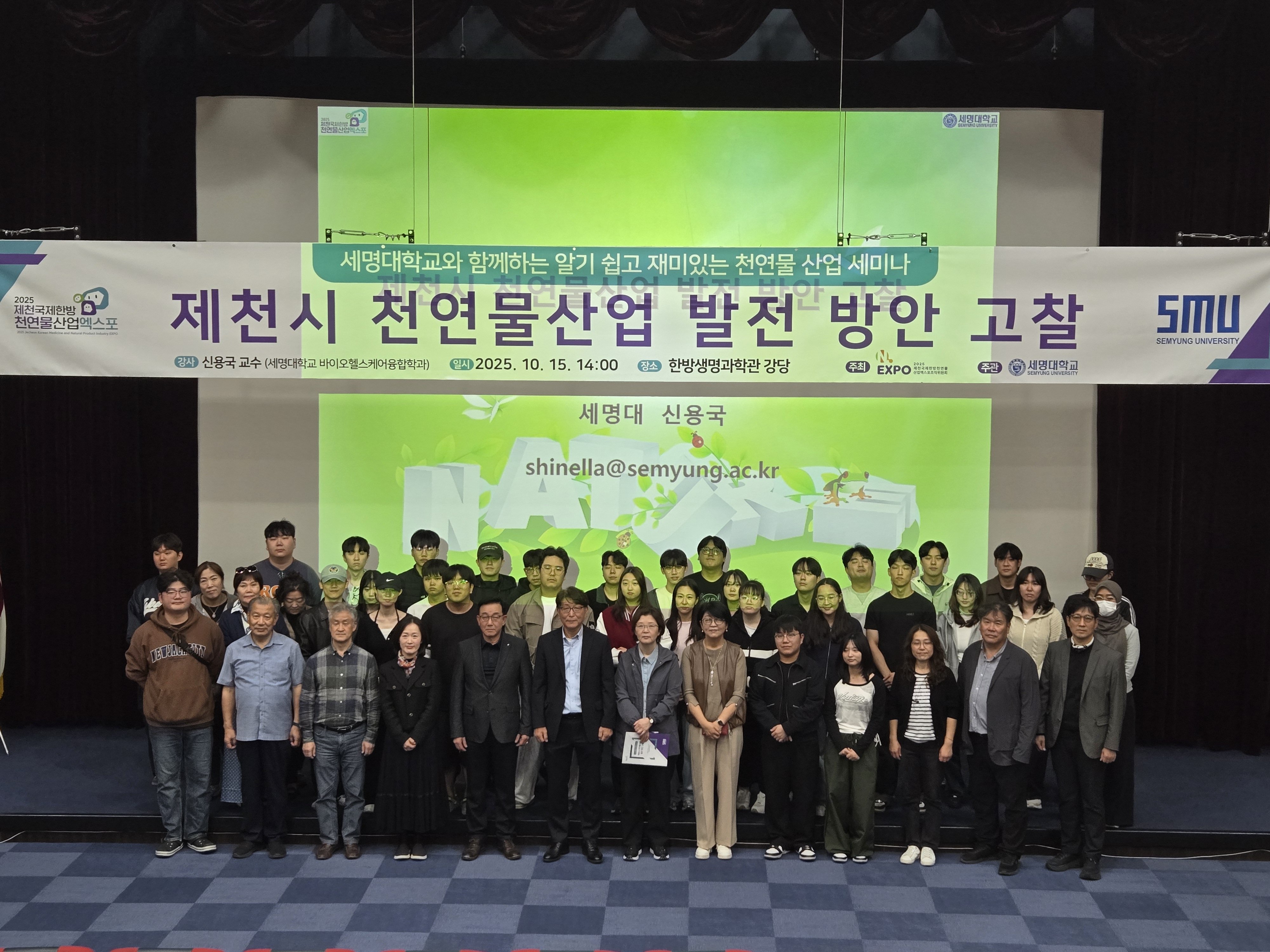제천엑스포, ‘세명대학교 천연물산업 세미나’ (사진제공=충청북도) [PEDIEN] 2025 제천국제한방천연물산업엑스포 조직위원회가 지역 대학과 협력하여 천연물 산업의 연구 성과를 공유하고 대중의 이해도를 높이는 세미나를 성공적으로 마무리했다. 세명대학교가 주도한 이번 세미나는 총 4회에 걸쳐 진행되었으며, 시민과 학생 800여 명이 참여해 천연물의 가치와 산업적 가능성을 확인했다.이번 행사는 엑스포를 앞두고 지역 사회가 천연물 산업에 동참하고 연구 저변을 확대하는 데 중점을 뒀다. 세미나는 우리의 건강과 직결된 천연물 연구를 폭넓게 다루면서 일반 시민들도 쉽게 접근할 수 있도록 강연을 구성했다.특히 세명대학교 교수진이 직접 나서 전문적인 지식을 공유하며 큰 호응을 얻었다. 한의과대학 최수지 교수는 ‘한의학적 관점에서 본 천연물과 백세시대’를 주제로 강연했고, 임상병리학과 문철 교수는 ‘천연물 유래 물질의 면역기능 조절과 평가’에 대해 발표했다.또한 바이오제약산업학부 신용국 교수는 ‘제천시 천연물산업 발전 방안’을 구체적으로 제시하며 지역 산업의 미래를 논의했다. 이는 지역 대학이 보유한 연구 역량과 전문성을 바탕으로 제천 천연물 산업의 발전 방향을 모색하는 뜻깊은 시간이었다는 평가다.세명대학교 바이오제약산업학부 강신호 교수는 이번 세미나가 지역 대학의 주도적 참여를 통해 천연물 연구 저변을 강화하는 계기가 되었다고 설명했다. 강 교수는 "앞으로도 세명대학교의 연구 활동이 제천 천연물 산업의 경쟁력 강화와 기업 성장에 실질적인 도움이 되기를 기대한다"고 밝혔다. -