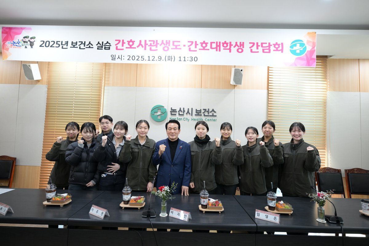 임상실습 간호대학생 간담회 [PEDIEN] 논산시가 지역 현장에서 성장하는 미래 보건 인재들과 소통하며 지속 가능한 공공보건 생태계 조성에 나섰다.논산시는 지난 9일 논산시보건소에서 임상실습 과정에 참여 중인 간호대학생 10명을 대상으로 간담회를 열고 격려와 소통의 시간을 가졌다고 밝혔다.이번 간담회는 보건소 현장에서 실무 경험을 쌓고 있는 실습생들의 노고를 격려하고, 실습 과정에서 느낀 현장의 목소리와 건의 사항을 듣기 위해 마련됐다.이날 간담회는 보건소의 주요 사업과 임상실습 운영 현황 보고로 시작해 학생들의 실습 소감 발표와 질의응답 순으로 진행됐다. 참석한 학생들은 “강의실을 벗어나 공중보건의 최전선인 보건소 현장을 경험해 보니, 지역사회에서 보건 행정이 얼마나 중요한 역할을 하는지 느낄 수 있었다”고 소감을 전했다.한편, 논산시보건소는 지난 8월부터 국군간호사관학교와 건양대학교 4학년 학생 56명을 대상으로 임상실습 프로그램을 운영하고 있다. 학생들은 보건 행정 실무, 감염병 관리 등 지역사회 기반의 실습을 통해 전문적인 보건의료 역량을 키우고 있다.논산시 관계자는 “앞으로도 간호대학생들이 지역 보건의 현실을 깊이 이해하고 다양한 현장을 경험하며 훌륭한 의료인으로 성장할 수 있도록 대학과의 협력을 강화하고 실습 여건을 지속적으로 확대해 나가겠다”고 말했다. -