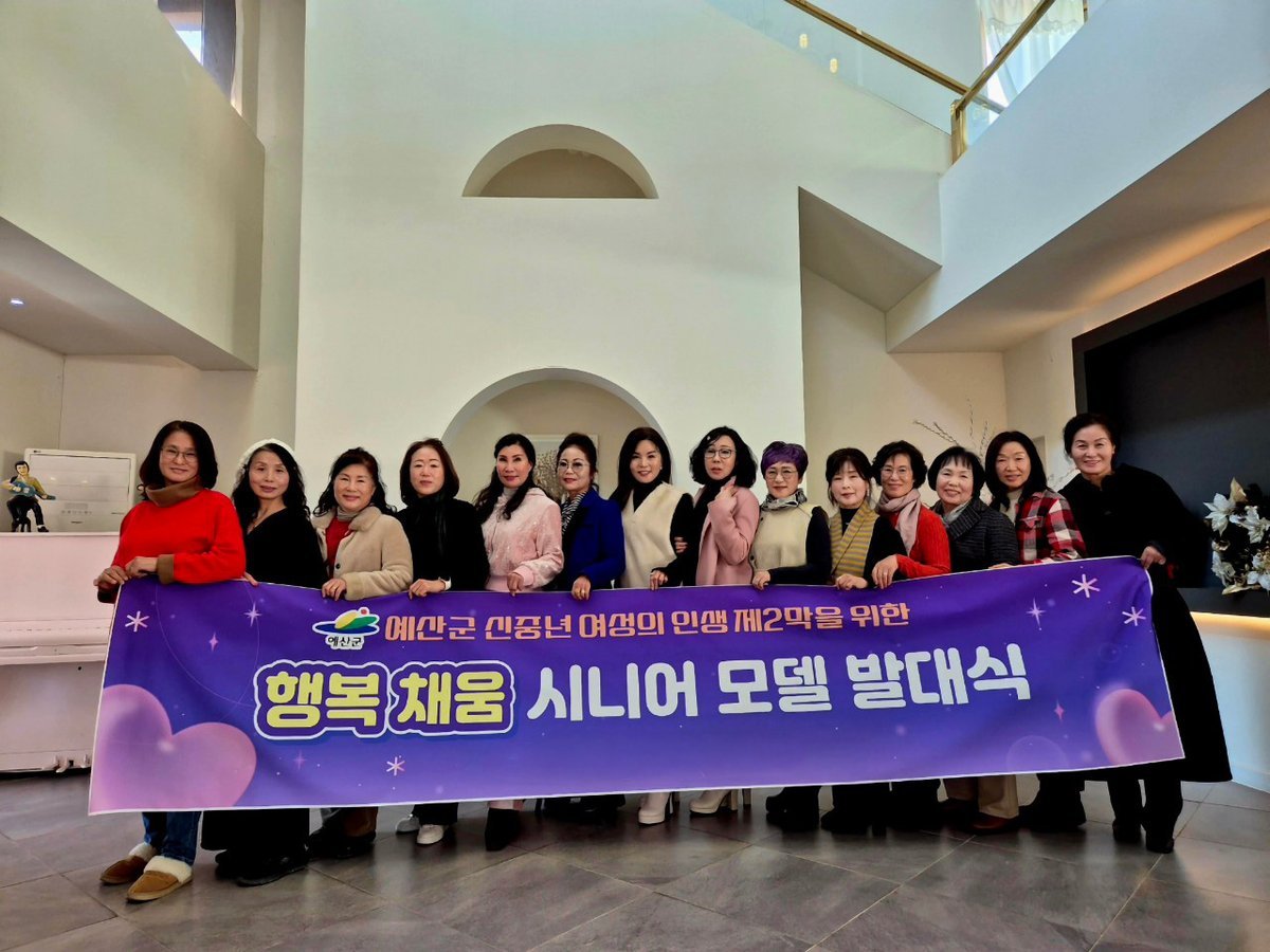 예산군 행복채움 시니어모델단, 인생 제2막 힘찬 출발 (예산군 제공) [PEDIEN] 예산군 행복채움 시니어모델단이 신중년 여성들의 인생 제2막을 열기 위한 발대식을 갖고 본격적인 활동을 시작했다고 10일 밝혔다.시니어모델단은 2024년 여성사회교육 프로그램으로 운영된 시니어모델 아카데미를 기반으로 성장했으며, 이번 발대식에는 △오경분 회장 △김경희·김영신 부회장을 포함한 13명이 참석해 새 출발을 함께 축하했다.강의를 맡았던 심미경 경기수원시니어모델협회장은 “예산군 시니어모델단이 지역의 긍정적인 변화를 이끄는 문화 주체가 되길 바란다”고 격려했다.오경분 회장은 “같은 길을 걸으며 함께 성장하는 단원들에게 감사하다”며 “당당하고 아름다운 중년 이후의 삶을 펼칠 수 있도록 노력하겠다”고 말했다.한편 시니어모델단은 워킹 교육 강화와 지역 홍보, 사회공헌 활동 등을 통해 지역 문화 발전과 세대 간 소통에 기여할 계획이다. -
