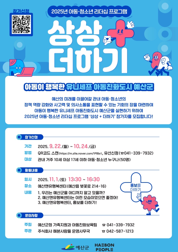 예산군, ‘상상+더하기 아동·청소년 리더십 프로그램’ 참가자 모집기간 연장