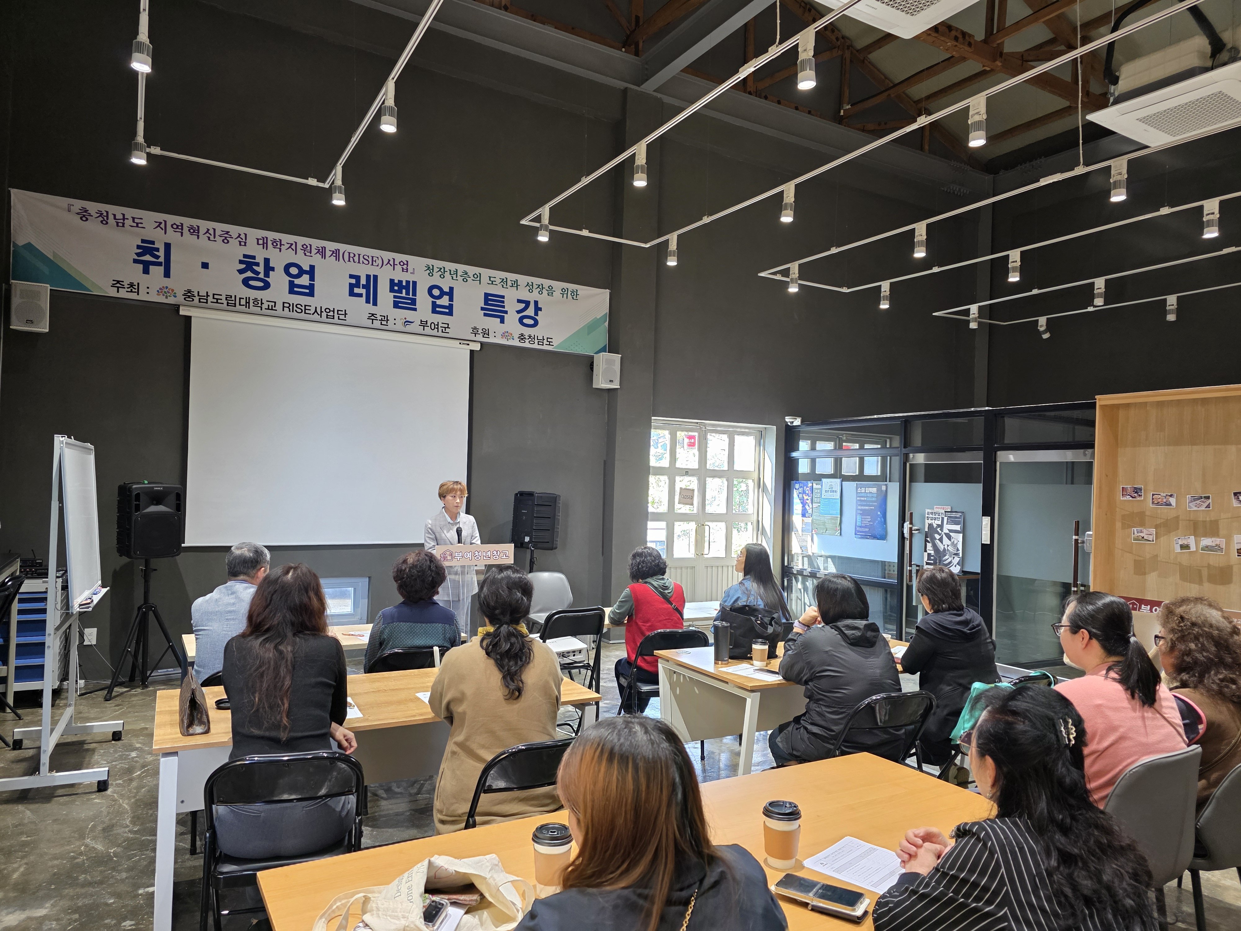 취·창업_레벨업_특강 [PEDIEN] 충남도립대학교가 부여군과 협력하여 지역 청장년층의 창업을 적극적으로 지원한다.충남도립대 라이즈(RISE)사업단은 부여군과 함께 청장년층의 창업 역량을 강화하기 위한 ‘취·창업 레벨업 특강’을 운영하며 지역 창업 생태계 조성에 나섰다. 이번 프로그램은 충남도 지역혁신중심 대학지원체계(RISE)사업의 일환으로, 부여군 내 청장년 20명을 대상으로 창업에 필요한 실무 능력을 단계적으로 강화하는 데 초점을 맞춘다.지난 22일 부여군 규암면 청년창고에서 첫 번째 특강이 열렸다. ‘창업 도전부터 전자책 출간까지의 스토리’라는 주제로 카페 공간비 조혜자 대표가 강연자로 나서 자신의 창업 경험과 시행착오를 생생하게 전달했다. 참석자들은 창업의 현실적인 이야기가 큰 도움이 되었다는 반응을 보였다.오는 28일에는 김태욱세무회계사무소 김태욱 대표가 ‘창업자를 위한 세무 실무’를 주제로 두 번째 특강을 진행한다. 11월에는 미리캔버스를 활용한 콘텐츠 제작, SNS 홍보·마케팅 전략 등 다양한 주제의 강연이 이어진다.유대준 라이즈사업단장은 이번 특강이 취업과 창업을 준비하는 지역 청년들에게 실질적인 도움을 줄 것으로 기대하며, 앞으로도 부여군과 협력하여 지역 수요에 맞는 교육 프로그램을 운영하고 지역 자원을 기반으로 한 지속 가능한 창업 생태계 조성에 힘쓰겠다고 밝혔다.‘취·창업 레벨업 특강’은 강의당 선착순 20명 내외로 운영되며, 참여 희망자는 충남도립대학교 라이즈(RISE)사업단 또는 부여군 경제교통과 일자리경제팀으로 문의하면 된다. -