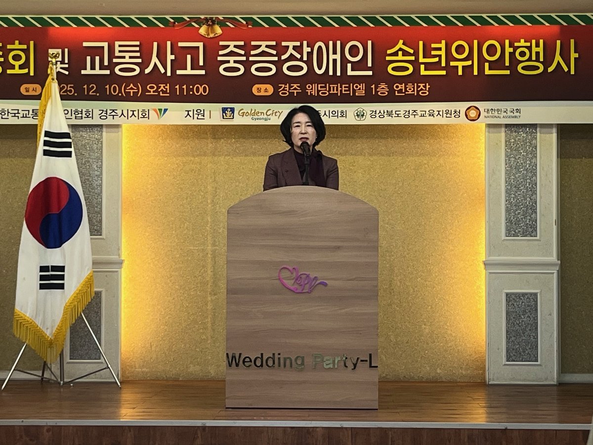 한국교통장애인협회 경주시지회, 교통사고 중증장애인 송년위안행사 개최 (경주시 제공) [PEDIEN] 한국교통장애인협회 경주시지회가 지난 10일, 교통사고로 어려움을 겪는 중증장애인들을 위한 송년 위안 행사를 개최했다.경주 웨딩파티엘에서 열린 이번 행사에는 협회 회원, 자원봉사자, 후원자 등 200여 명이 참석하여 따뜻한 시간을 함께했다.이날 행사는 올 한 해 동안 진행된 교통사고 예방 캠페인 등 주요 활동을 공유하고, 교통장애인 복지 향상에 기여한 유공자 및 자원봉사자에게 표창을 수여하며 그 의미를 되새겼다.한국교통장애인협회 경주시지회는 교통사고 예방 캠페인뿐만 아니라 무장애도로 조사사업, 경로당 및 어린이집 대상 교통안전 방문 교육 등 지역 사회의 교통안전 의식 개선을 위한 다양한 사업을 꾸준히 추진해왔다.특히 초등학교 앞 횡단보도에서 진행된 '노란발자국 교통안전 캠페인'은 어린이 보호구역 내 안전 습관 형성에 기여했다는 평가를 받으며, 캠페인에 적극 참여한 학생들에게 표창이 수여되기도 했다.이광식 지회장은 교통사고 예방의 중요성을 강조하며 시민들의 적극적인 참여를 당부했다.이경화 경주시 장애인여성복지과장은 교통안전 상담 및 홍보 사업에 대한 지속적인 지원을 약속하며, 앞으로도 장애인 인식 개선과 복지 증진을 위해 최선을 다할 것이라고 밝혔다.