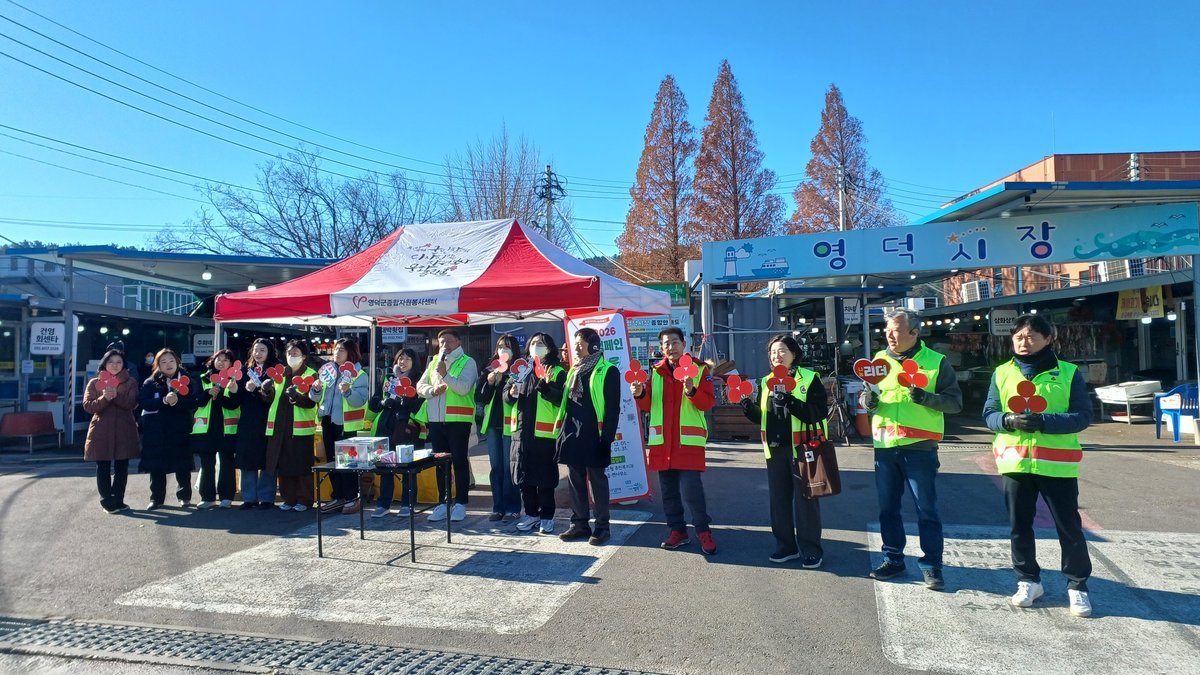 영덕군·사랑의열매, 나눔 캠페인 합동 거리 모금 (영덕군 제공) [PEDIEN] 영덕군이 사랑의열매 나눔봉사단과 함께 연말을 맞아 따뜻한 나눔 문화 확산을 위한 합동 거리 모금 캠페인을 진행했다.이번 '희망2026 나눔 캠페인'은 지난 8일부터 10일까지 3일간 영덕, 강구, 영해 시장 일대에서 펼쳐졌다.특히 이번 캠페인에는 지역 사회의 따뜻한 손길이 더해져 더욱 의미를 더했다. 사암엔터테인먼트 한원유 대표는 음향 장비를 흔쾌히 지원했으며, 포크송 가수 김시연의 아름다운 공연, 오십천아코디언 동호회의 감미로운 연주, 그리고 해파랑 고고장구단의 신명나는 무대가 펼쳐져 모금 현장의 분위기를 한층 고조시켰다.이번 캠페인을 통해 영덕군과 사랑의열매는 약 1000만 원의 소중한 성금을 모금하는 결실을 맺었다. 모금된 성금은 경북사회복지공동모금회를 통해 영덕군 내 어려운 이웃들을 돕는 데 전액 사용될 예정이다.영덕군은 이번 나눔 캠페인을 통해 지역 사회의 온정을 확인하고, 앞으로도 소외된 이웃을 위한 다양한 지원 사업을 펼쳐나갈 계획이라고 밝혔다. -