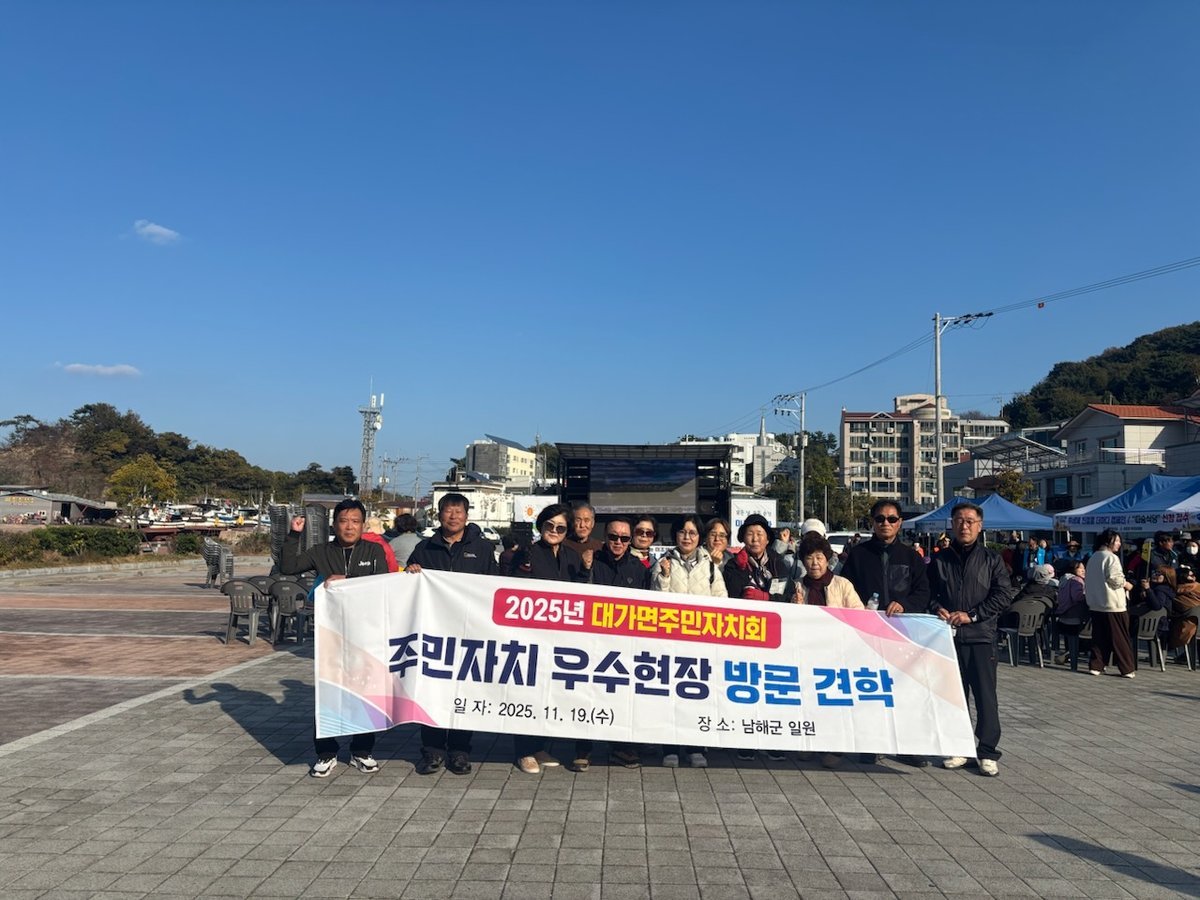 [PEDIEN] 대가면 주민자치회가 지난 19일, 남해군 미조면 일대에서 주민자치 우수현장 견학을 실시했다. 이번 견학은 주민자치회 위원과 담당 공무원, 영현면·영오면 주민자치회 관계자 등 총 20여 명이 참여했다.미조면 주민자치회의 운영 현황 발표와 활동 영상 시청을 통해, 참석자들은 미조면의 성공적인 주민자치 운영 노하우를 공유받았다. 또한, 주민자치회 활성화 방안에 대한 질의응답 시간을 가지며 심도 있는 논의를 진행했다.특히, 대가면 주민자치회 위원들은 미조면 주민자치회가 주관한 ‘제5회 미조면 주민자치회 건강걷기대회 및 가을음악회’에 직접 참여했다. 주민자치회가 주관하는 사업을 체험하며, 대가면에 접목할 수 있는 방안을 모색하는 시간을 가졌다.최정화 대가면 주민자치회장은 “이번 견학이 주민자치회 활성화 방안을 논의하는 데 매우 유익했다”고 평가했다. 덧붙여 “올해 주민자치회로 전환한 대가면은 다른 지역의 우수사례를 접할 기회가 더욱 필요하며, 앞으로도 다양한 기회를 만들기 위해 노력할 것”이라고 밝혔다.