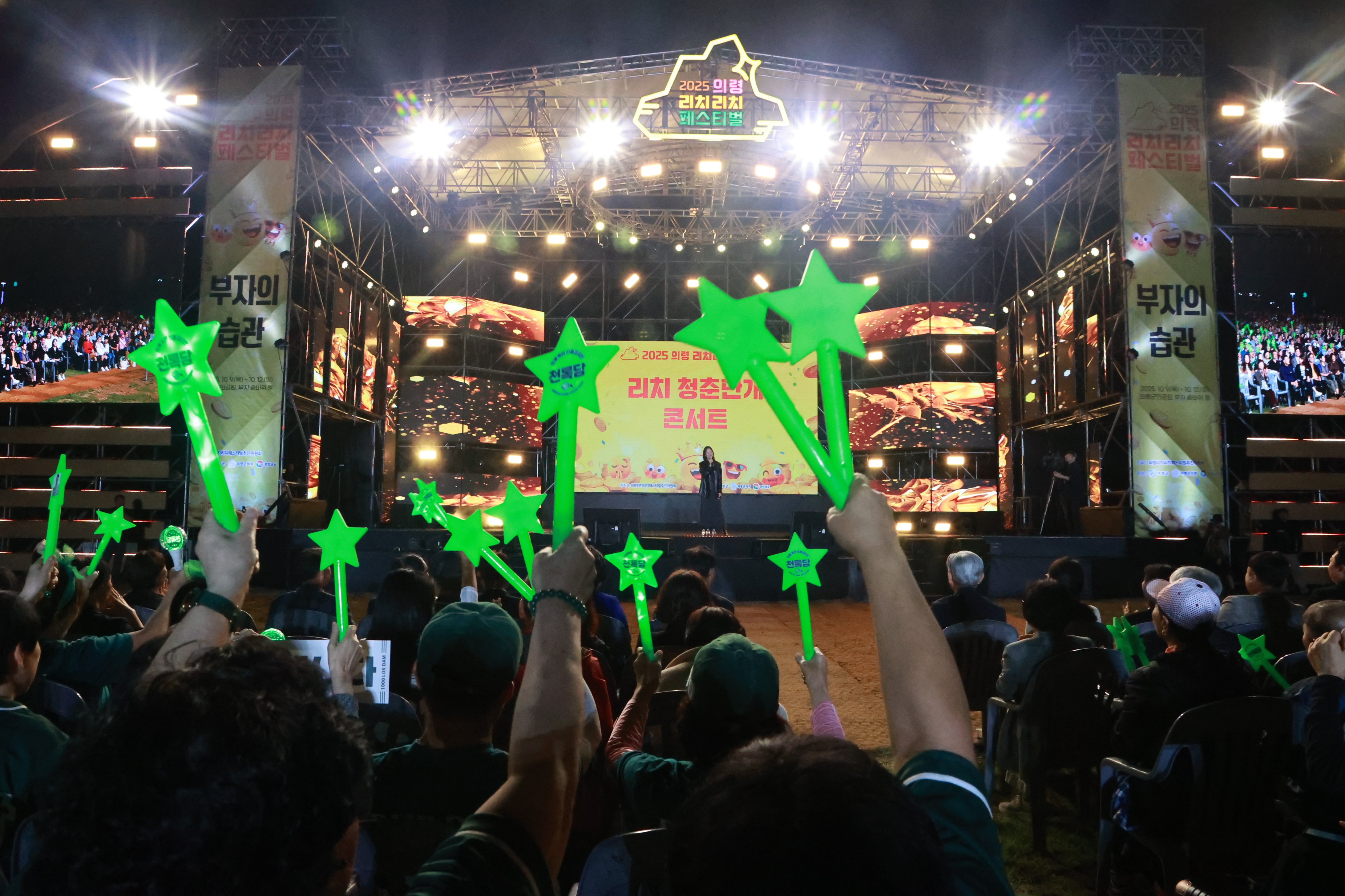 의령 청년과 함께하는‘리치 청춘만개 콘서트’개최 (사진제공=의령군) [PEDIEN] 의령군이 최근 ‘리치리치페스티벌’과 연계하여 7,000여 명의 청년과 군민이 참여한 ‘리치 청춘만개 콘서트’를 성공적으로 개최했다.이번 행사는 단순한 축제를 넘어 청년들의 꿈을 응원하고 군의 미래 정책 비전을 공유하는 소통의 장으로 마련됐다. 군은 콘서트를 통해 청년들이 지역에 정착하고 활력을 찾을 수 있도록 실질적인 지원책을 홍보하는 데 집중했다.오태완 군수는 이날 청년들을 향한 응원 메시지를 직접 전달했으며, 이에 청년 대표가 감사 인사를 전하며 화답했다. 이어 군수와 청년 대표들이 함께하는 소통 퍼포먼스를 통해 의령군 청년 정책의 구체적인 비전을 공유하는 시간을 가졌다.군은 이번 콘서트에서 운전면허 및 중고차 구입비 지원, 결혼장려금 지급 등 청년들의 초기 정착을 돕는 다양한 정책을 적극적으로 알렸다. 또한 현재 조성 중인 복합커뮤니티센터와 청년하우스 등 인프라 활용을 독려하며 청년들의 관심을 유도했다.축제의 열기를 더하기 위해 뮤지컬 싱어즈, 노라조, 천록담, 백지영 등 유명 가수들이 무대에 올라 청년과 시민이 함께 즐기는 축제의 장을 완성했다.군 관계자는 “청년이 마음껏 꿈을 펼칠 수 있는 환경을 조성하는 것이 목표”라며 “앞으로도 지속적인 정책 개발을 통해 의령을 ‘청년 드림시티’로 만들어갈 계획”이라고 밝혔다. -