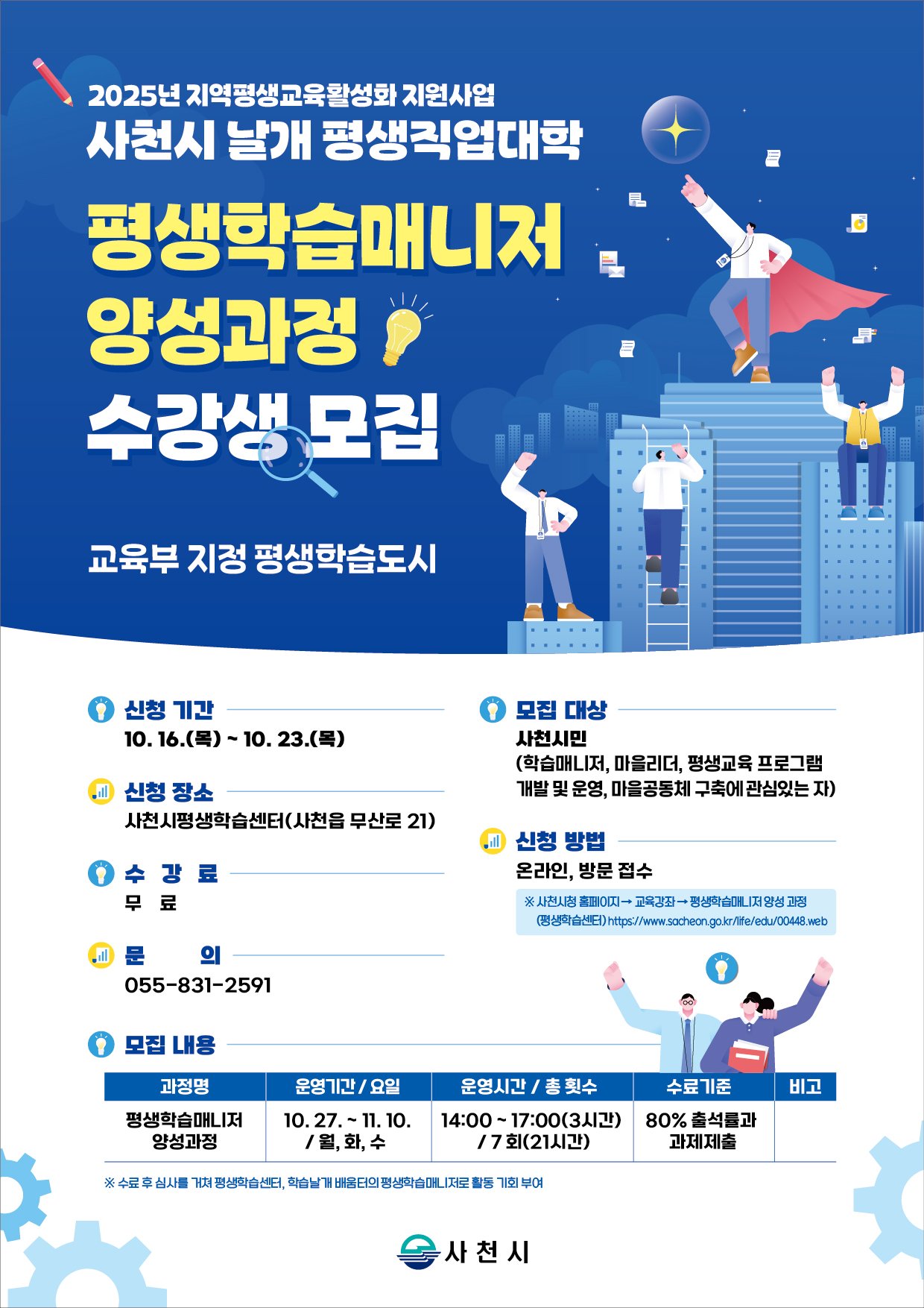 사천시, 2025년 평생학습도시 발판 마련… 매니저 양성과정 수강생 모집
