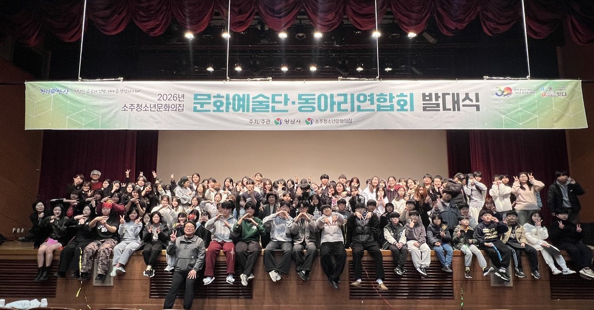 [PEDIEN] 2026년 2월 28일 토요일, 소주청소년문화의집 청소년문화예술단 및 동아리연합회 발대식이 웅상문화체육센터 공연장에서 개최되었다.이번 발대식은 2026년 한 해 동안 활동할 청소년문화예술단과 동아리연합회의 공식적인 출발을 알리는 자리로, 문화예술단과 동아리연합회를 포함한 총 20개 팀이 참여하여 의미를 더했다.행사는 1부와 2부로 나뉘어 진행되었다. 1부에서는 위촉장 수여식과 청소년 헌장 낭독이 진행되었으며, 청소년들의 꿈과 열정을 응원하는 소주청소년문화의집 이성미 관장의 격려 말씀과 함께 선포식이 이어지며 본격적인 활동의 시작을 알렸다. 위촉장을 수여받은 청소년들은 책임감과 사명감을 바탕으로 한 해 동안 성실하고 주도적인 활동을 이어갈 것을 다짐했다.2부에서는 소주청소년문화의집 소개와 연간 활동 계획 안내, 동아리별 소개가 진행되어 향후 운영 방향과 활동 비전을 공유하는 시간을 가졌다. 이어 댄스동아리의 축하공연과 소주청소년문화의집 제1대 복면가왕 및 부가왕의 무대가 마련되어 행사 분위기를 한층 고조시켰다.또한 청소년 간 소통과 교류 활성화를 위해 마련된 참여형 마술공연은 참가자들의 적극적인 호응 속에 진행되었으며, 발대식은 화합과 연대의 의미를 되새기는 자리로 마무리되었다.행사에 참여한 한 청소년은 “동아리 활동을 통해 자신의 재능을 계발하고 다양한 경험을 쌓고 싶다”고 소감을 밝혔다.양산시의 관계자는 “청소년이 주도적으로 기획하고 참여하는 동아리 활동이 지역사회와 함께 성장하는 기반이 될 수 있도록 지속적인 지원을 아끼지 않겠다”고 전했다.소주청소년문화의집은 앞으로도 청소년들의 건전한 문화 활동 활성화와 역량 강화를 위해 다양한 프로그램을 운영하며 적극적인 지원을 이어갈 계획이다.1부에서는 위촉장 수여식과 청소년 헌장 낭독이 진행됐으며 청소년들의 꿈과 열정을 응원하는 소주청소년문화의집 이성미 관장의 격려 말씀과 함께 선포식이 이어지며 본격적인 활동의 시작을 알렸다.위촉장을 수여받은 청소년들은 책임감과 사명감을 바탕으로 한 해 동안 성실하고 주도적인 활동을 이어갈 것을 다짐했다.2부에서는 소주청소년문화의집 소개와 연간 활동 계획 안내, 동아리별 소개가 진행되어 향후 운영 방향과 활동 비전을 공유하는 시간을 가졌다.이어 댄스동아리의 축하공연과 소주청소년문화의집 제1대 복면가왕 및 부가왕의 무대가 마련되어 행사 분위기를 한층 고조시켰다.또한 청소년 간 소통과 교류 활성화를 위해 마련된 참여형 마술공연은 참가자들의 적극적인 호응 속에 진행됐으며 발대식은 화합과 연대의 의미를 되새기는 자리로 마무리됐다.행사에 참여한 한 청소년은 “동아리 활동을 통해 자신의 재능을 계발하고 다양한 경험을 쌓고 싶다”고 소감을 밝혔다.양산시의 관계자는 “청소년이 주도적으로 기획하고 참여하는 동아리 활동이 지역사회와 함께 성장하는 기반이 될 수 있도록 지속적인 지원을 아끼지 않겠다”고 전했다.소주청소년문화의집은 앞으로도 청소년들의 건전한 문화 활동 활성화와 역량 강화를 위해 다양한 프로그램을 운영하며 적극적인 지원을 이어갈 계획이다.