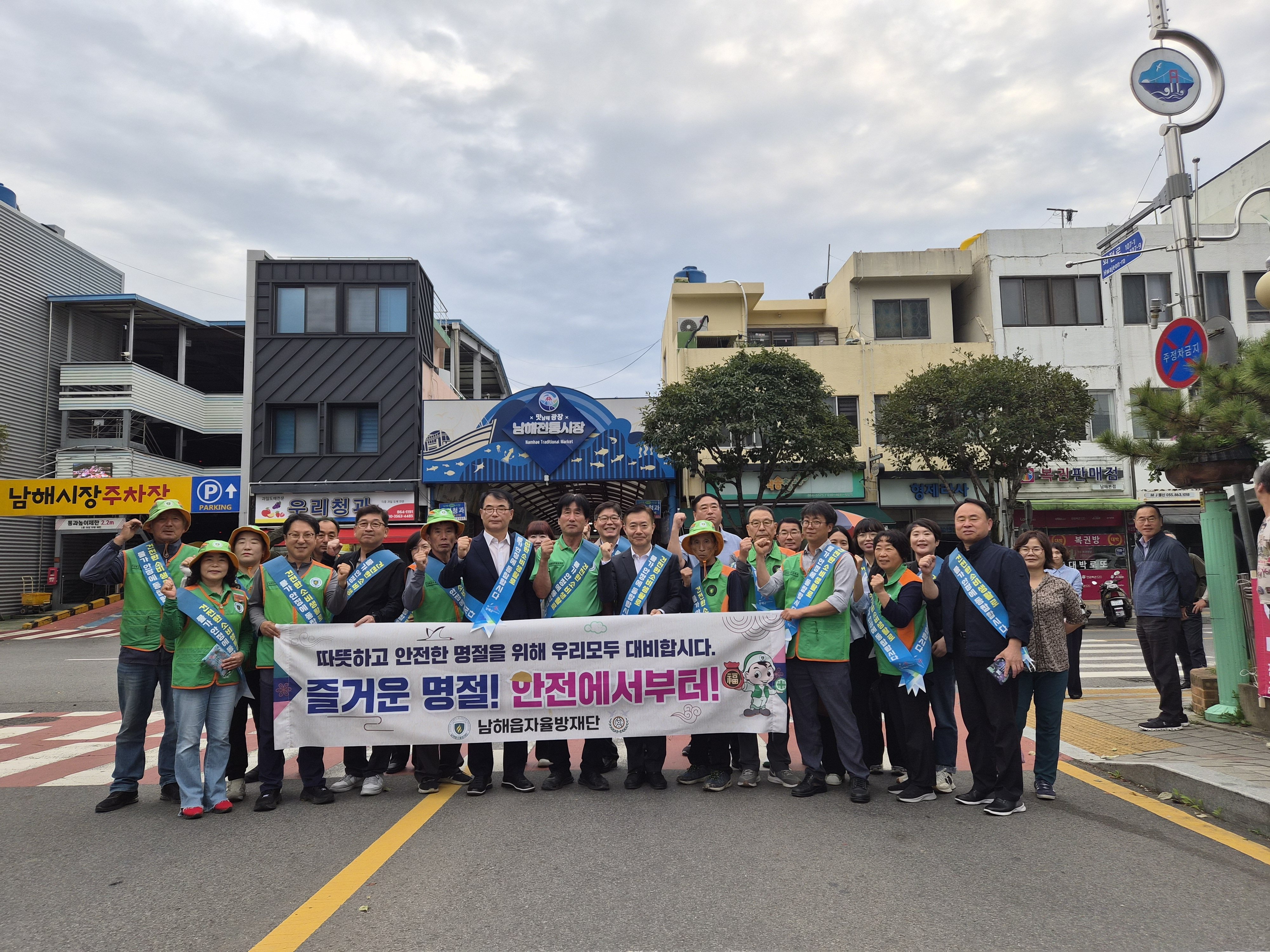 9. 남해읍 자율방재단, 안전문화 캠페인 실시 (사진제공=남해읍행정복지센터) [PEDIEN] 남해읍 자율방재단이 추석 명절을 앞두고 주민들의 안전 의식을 높이기 위한 선제적인 캠페인을 실시했다. 방재단은 명절 기간 발생할 수 있는 각종 안전사고를 예방하고 안전 문화를 확산시키기 위해 전통시장을 중심으로 홍보 활동을 펼쳤다. 방재단(단장 조만수)은 지난 2일 오전 6시 40분부터 약 한 시간 동안 남해읍 전통시장 일원에서 ‘안전한 추석 명절 보내기’ 안전문화 캠페인을 진행했다. 이는 주민들이 가장 많이 모이는 전통시장의 장날에 맞춰 계획된 활동으로, 실질적인 사고 예방 효과를 높이는 데 중점을 뒀다. 방재단원들은 시장을 찾은 주민들에게 안전 수칙을 홍보하고, 안전 문화의 중요성을 강조하며 사고 예방에 대한 경각심을 높이는 데 주력했다. 조만수 단장은 “추석 명절을 앞두고 면민들이 많이 모이는 전통시장을 중심으로 캠페인을 진행했다”며 “앞으로도 안전문화 의식을 주민들이 내면화할 수 있도록 홍보에 더욱 앞장서겠다”고 밝혔다. 이창융 남해읍장 역시 바쁜 일정에도 캠페인에 참여한 자율방재단의 노고에 감사를 표하며 지역 안전에 대한 의지를 다졌다. 이 읍장은 “지속적인 홍보를 통해 안전하고 살기 좋은 ‘국민고향 남해’를 만드는 데 최선을 다하겠다”고 말했다. -
