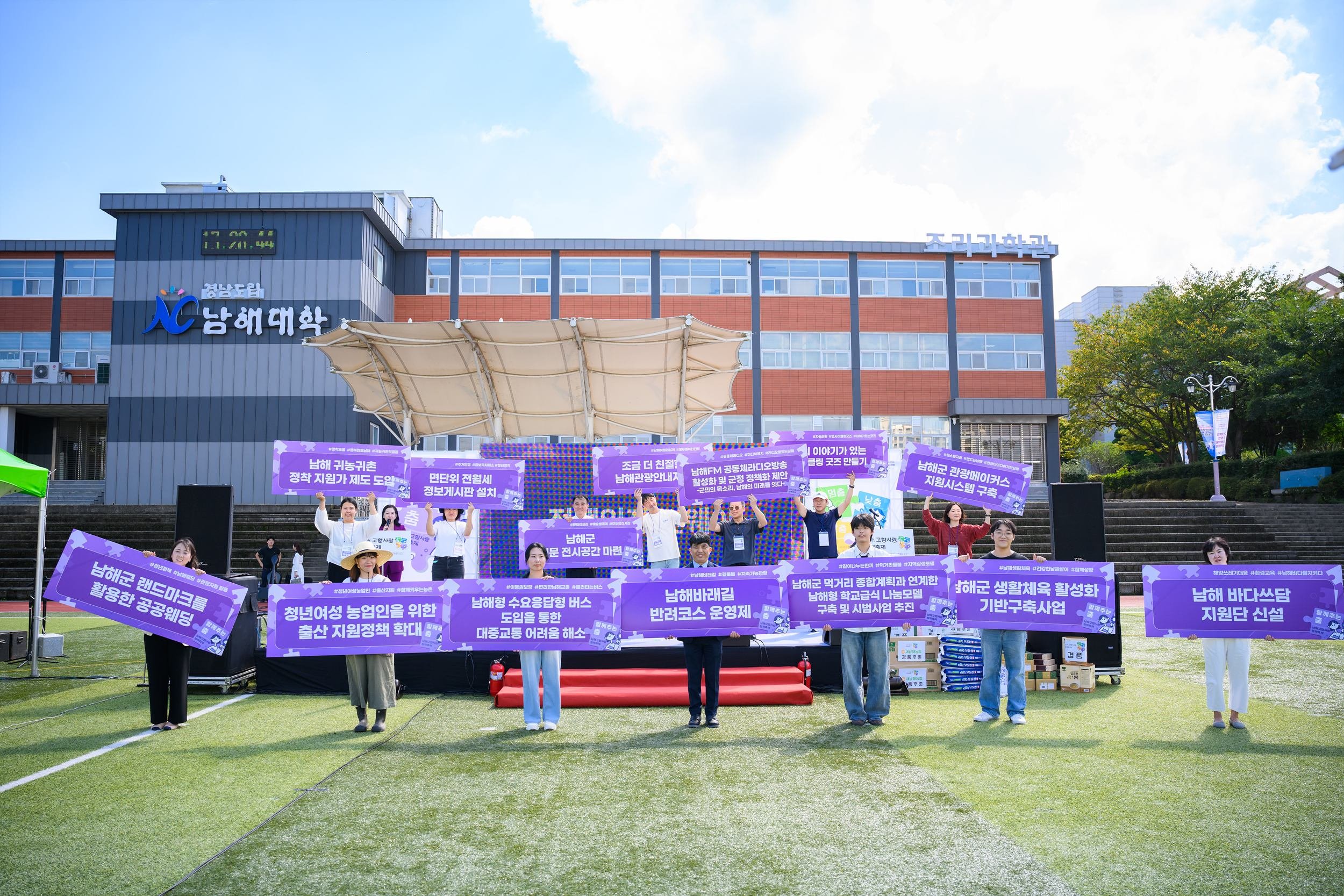 4. 남해 고향사랑 정책축제 성황리 개최1 (사진제공=남해관광문화재단) [PEDIEN] 남해군민이 직접 발굴하고 투표한 정책을 공유하는 ‘남해 고향사랑 정책축제’가 지난 9월 27일 경남도립남해대학 운동장에서 성황리에 막을 내렸다. 600여 명의 군민이 참여한 이번 축제는 정책 제안부터 투표, 심사까지 전 과정을 군민이 주도하며 풀뿌리 민주주의의 가능성을 보여줬다는 평가다. 이번 축제는 정책을 딱딱한 행정 주제가 아닌 모두가 즐기는 축제의 장으로 만들었다. 지역 예술인 공연과 가수 정홍일이 참여한 토크쇼가 분위기를 띄웠으며, 어린아이부터 어르신까지 다양한 세대가 함께 어우러져 남해군의 미래를 논했다. 이날 무대에서는 중학생부터 청년, 어르신까지 다양한 세대가 참여한 14건의 정책 제안이 발표됐다. 제안자들은 5분 동안 남해가 직면한 현실 문제와 해결 방안을 진지하게 공유했으며, 이후 정책마켓 부스 라운딩을 통해 군민들과 직접 소통했다. 약 400명의 군민평가단 투표와 심사위원단의 평가를 거쳐 최종 3개의 우수 정책이 선정됐다. 대상은 상주중학교 무지개협동조합이 제안한 ‘남해형 학교급식 나눔모델 구축’이 차지했다. 이 모델은 버려지는 학교 급식 잔식을 취약계층에게 전달하여 환경 문제와 사회적 문제를 동시에 해결할 수 있다는 점에서 높은 평가를 받았다. 최우수상은 김보람 씨의 ‘남해형 수요응답형 버스 도입을 통한 대중교통 어려움 해소’가, 우수상은 양희수 씨의 ‘남해군 랜드마크를 활용한 공공웨딩’이 각각 수상했다. 행사장에는 15개 기관단체가 참여한 정책 부스와 아이들이 직접 셀러로 나선 ‘꼼지락 장터’가 열려 가족 단위 방문객들에게 큰 호응을 얻었다. 무엇보다 이번 축제의 가장 큰 의의는 군민이 발굴하고 선택한 정책이 실제 행정으로 이어질 수 있는 가능성을 열었다는 점이다. 특히 군민평가단 투표와 지역 전문가로 구성된 심사위원단의 평가를 함께 반영하는 구조를 도입해 공정성과 전문성을 동시에 확보했다. 남해관광문화재단 김용태 대표이사는 “군민의 목소리가 정책이 되는 축제를 만들기 위해 노력했다”며 “앞으로도 군민과 함께 정책을 만들고 실행하는 문화를 확산시켜 나가겠다”고 향후 계획을 밝혔다. -