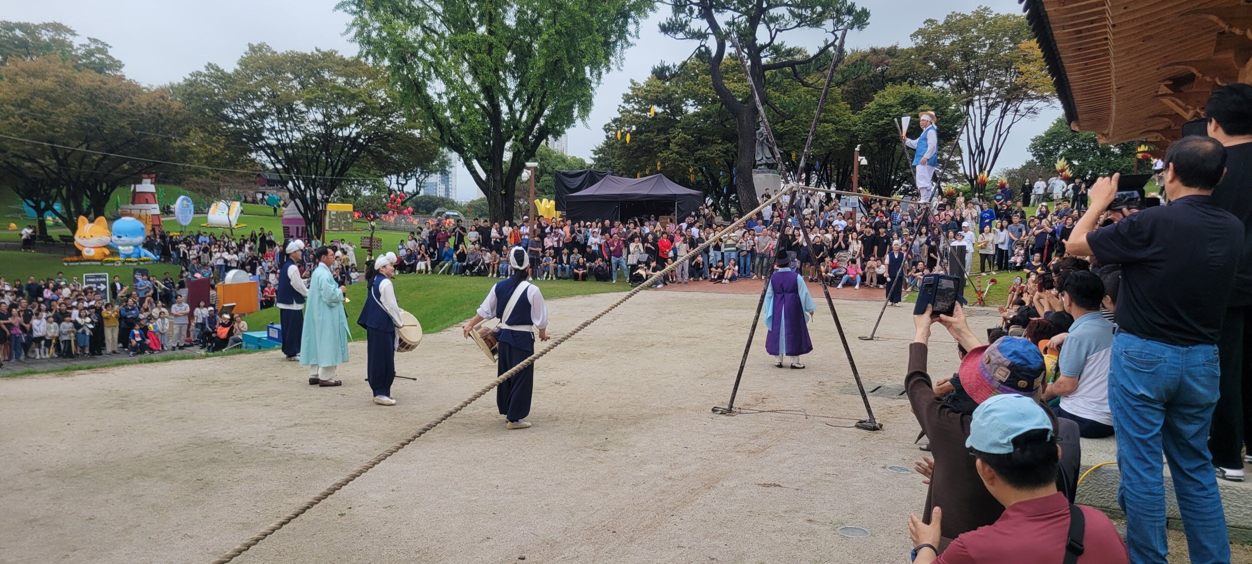 진주성, 낮에는 전통연희 밤에는 유등… '연희광대'로 가을 관광객 사로잡다