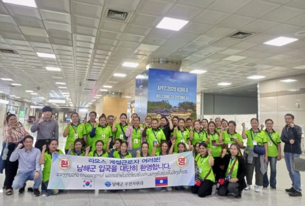남해군, 하반기 수산업 분야‘라오스 계절근로자’입국 [PEDIEN] 남해군은 법무부 주관 ‘2025년 하반기 외국인 계절근로자 프로그램’ 으로 배정된 ‘라오스 외국인 여성 계절근로자’ 34명이 지난 16일 김해공항을 통해 입국했다고 밝혔다. 이번 라오스 외국인 여성 계절근로자 입국은 2022년 남해군과 라오스 사회노동부 간에 체결한 MOU 협약에 따른 것으로 2023년부터 시행되고 있다. 비자 체류 기간인 5개월 동안 군 관내 굴양식 7어가에서 종사하게 된다. 남해군 수산자원과에서는 ‘하반기 계절근로자’ 입국 당일 입국 수속 외 삼천포 제일병원에서 마약검사 등 건강검진을 실시했다. 또한 관내 계절근로자들을 고용하는 어가들의 소재지인 설천면행정복지센터에서 한국의 근로 문화 및 인권 보호 등에 대한 교육을 근로자들과 고용주들을 대상으로 진행했다. 수산자원과 관계자는 “남해군은 지금 본격적인 굴 수확을 앞두고 있어 입국한 외국인 계절근로가 일손이 부족한 어가에 많은 도움이 될 것으로 예상된다”며 “내년에도 우리 군 어촌에 필요한 인력들이 적절한 시기에 계절근로에 참여할 수 있도록 일손이 부족한 어가에서는 많은 관심을 가지고 신청해 주시기 바란다”고 말했다. -