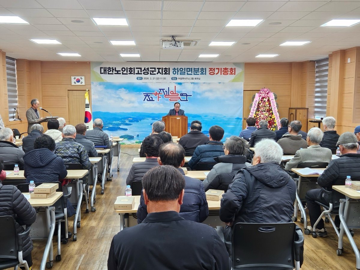 대한노인회 고성군지회 하일면 분회, 2026년도 정기총회 개최 (경남고성군 제공) [PEDIEN] 대한노인회 고성군지회 하일면 분회가 지난 27일 하일면사무소에서 2026년도 정기총회를 개최했다. 이날 총회에는 하일면 27개 경로당 회장 및 총무, 내빈 등 50여 명이 참석하여 경로당 운영 활성화 방안을 논의했다.총회는 노인강령 낭독, 우수경로당 시상, 신규 경로당 회장 등록증 수여, 2025년 결산보고, 2026년 하일면 분회 운영 방향 논의 순으로 진행되었다. 참석자들은 경로당 운영 활성화와 어르신 복지 증진을 위한 다양한 의견을 교환하며 소통하는 시간을 가졌다.특히 이번 총회에서는 동화경로당이 우수경로당으로 선정되어 수상의 영예를 안았다. 동화경로당은 모범적인 운영과 회원 간 화합을 통해 지역 어르신들의 여가 및 복지 향상에 기여한 공로를 인정받았다.또한, 신규 경로당 회장에게 등록증을 수여하며 경로당 운영의 책임과 역할을 강조하고, 경로당 간 협력과 소통을 통한 운영 내실화를 다짐했다.배종린 하일면 분회장은 경로당 회장 및 총무들의 헌신적인 노력에 감사를 표하며, 앞으로도 경로당 운영 활성화와 어르신 복지 향상을 위해 지속적으로 노력할 것을 약속했다.김영옥 하일면장은 경로당이 어르신들의 여가와 소통의 중심 공간이자 지역 공동체의 중요한 역할을 수행하고 있음을 강조하며, 어르신들이 안전하고 편안하게 경로당을 이용할 수 있도록 지속적인 관심과 지원을 아끼지 않겠다고 밝혔다. -