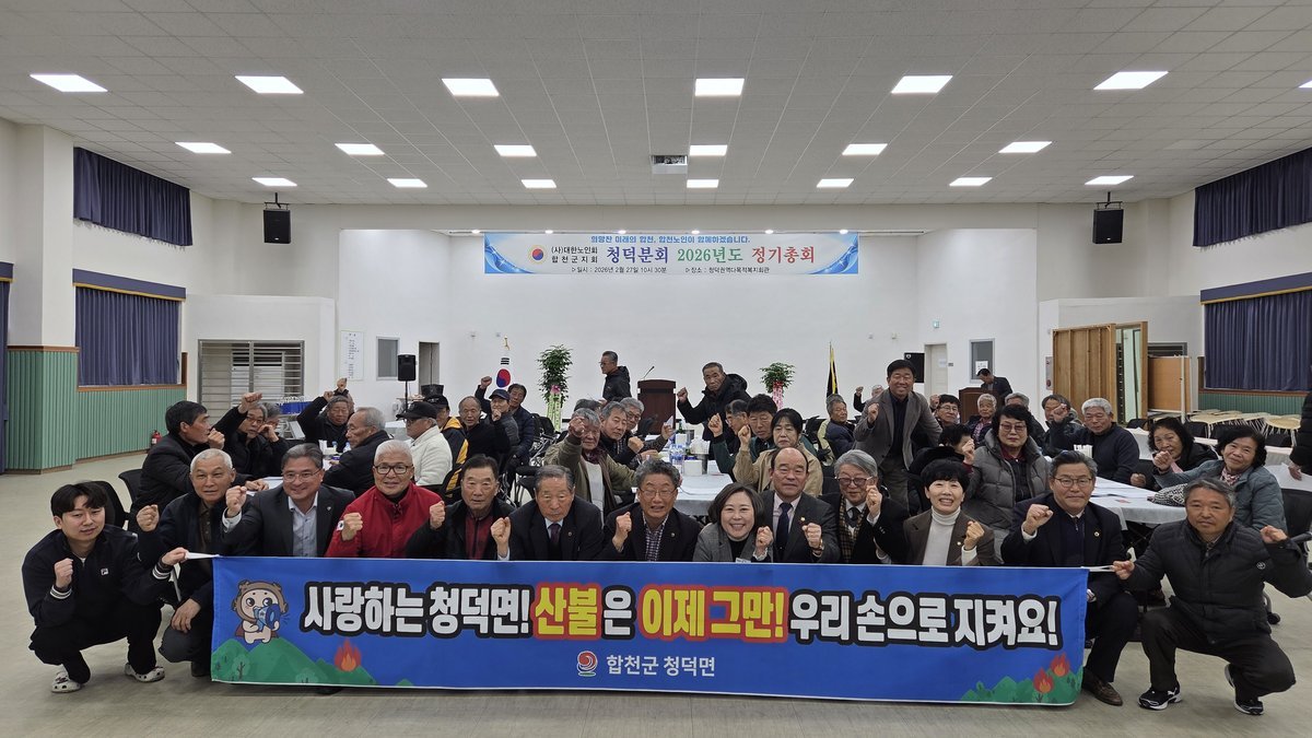 합천군 보도자료 청덕면 노인회분회 정기총회 개최 합천군 제공 [PEDIEN] 합천군 청덕면 노인회는 지난달 27일 정기총회를 개최하고, 회원 간 화합과 지역사회 발전을 다짐했다.총회에는 문외환 합천군노인회 지회장을 비롯해 관내 기관장, 마을 경로당 회장 및 총무 등 60여 명이 참석했다. 이번 총회에서는 지난해 결산 보고와 함께 올해 주요 업무 계획이 공유됐다.특히, 신임 경로당 회장에게 임명장이 수여되어 새로운 시작을 알렸다. 안상식 청덕면 노인회 분회장은 경로당 운영에 헌신하는 회장과 총무들에게 감사를 표하며, 회원 간의 협력을 강조했다.이은숙 청덕면장은 지역 발전을 위한 노인회의 협조에 감사를 전하고, 행정과 노인회의 지속적인 소통을 통해 어르신들에게 필요한 정책을 추진할 것을 약속했다.총회 후에는 경로당 회장과 총무를 대상으로 산불 예방 교육이 진행되어 안전 의식을 고취했다. 청덕면 노인회는 이번 정기총회를 통해 더욱 발전된 모습으로 지역사회에 기여할 것을 다짐했다. -