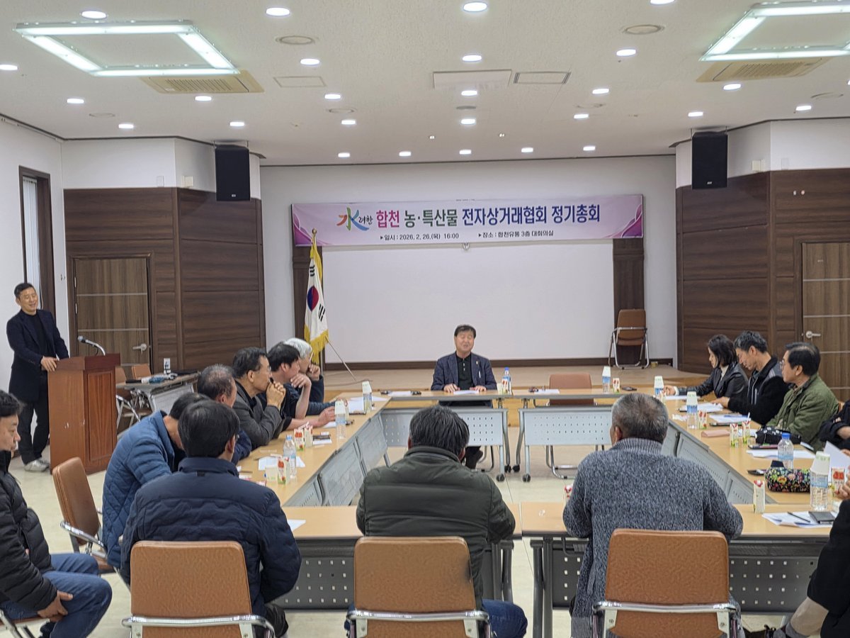 려한 합천 농특산물 전자상거래협회 정기총회 개최 (합천군 제공) [PEDIEN] 합천군 농업기술센터는 26일 려한 합천 농특산물 전자상거래협회 정기총회를 합천유통에서 개최했다.이번 총회에는 협회 회원 20여명이 참석하여 2025년 사업 추진 경과보고와 사업 결산을 진행했다. 또한 2026년 사업계획, 임원 선출, 협회 운영 전반에 대한 논의가 이루어졌다.특히, 총회에서는 전자상거래협회의 안정적인 운영 방안과 온라인 판로 확대 전략에 대한 다양한 의견이 제시되었다. 참석자들은 지역 농·특산물의 온라인 유통 활성화를 위한 협력체계 강화에 공감대를 형성했다.백문기 전자상거래협회 회장은 협회 운영에 적극 참여해 준 회원들에게 감사를 표하며, 온라인 판매 활성화를 통해 지역 농가 소득 증대에 기여할 것을 다짐했다.윤미영 농업유통과 과장은 전자상거래협회가 온라인 시장에서 활발히 활동하여 지역 농산물 판로 확대와 소비 촉진에 기여할 것으로 전망했다. 덧붙여 전자상거래 활성화를 위한 행정적 지원을 지속적으로 추진할 것을 약속했다.한편, 려한 합천 농특산물 전자상거래협회는 합천군 농·특산물의 온라인 유통 활성화를 목표로 다양한 사업을 추진하고 있다. 농업인의 판로 확대와 안정적인 판매 기반 구축을 위해 지속적인 노력을 기울일 예정이다. -