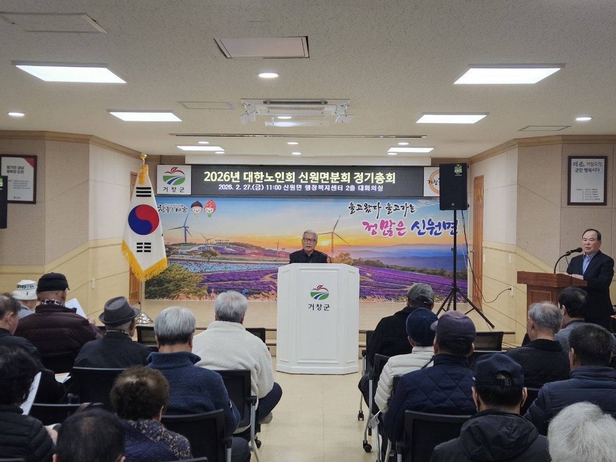 거창군 제공 [PEDIEN] 대한노인회 거창군 신원면분회가 27일 신원면 행정복지센터에서 정기총회를 개최했다. 이번 총회는 지역 어르신들의 권익 증진과 화합을 도모하기 위해 마련됐다.총회에는 거창군의회 의장, 신원면 33개소 경로당 회장 및 내빈 등 70여명이 참석했다. 참석자들은 2025년 결산 보고와 2026년 주요 사업 운영 방안을 논의하며 열띤 분위기를 연출했다.특히 올해는 9개 마을에서 새로운 경로당 회장이 선출되어 의미를 더했다. 총회는 신구 임원 간의 화합을 다지고 새로운 운영 비전을 공유하는 뜻깊은 자리가 되었다.총회에서는 신임 임원들이 경로당 운영에 어려움을 겪지 않도록 실무 교육도 진행됐다. 보조금 집행 기준과 투명한 정산 방법에 대한 교육이 심도 있게 이루어졌다.김영길 분회장은 “새롭게 취임한 아홉 분의 회장님들과 함께 더욱 단합된 신원면분회를 만들어가겠다”고 밝혔다. 이어 “어르신들이 마음 편히 머물 수 있는 안전한 경로당 환경을 만드는 데 최선을 다하겠다”고 덧붙였다.김춘미 신원면장은 “지역의 든든한 버팀목이 되어주시는 어르신들의 노고에 깊이 감사드린다”고 말했다. 또한 “살기 좋은 마을을 넘어 어르신들의 웃음이 끊이지 않는 활력 넘치는 신원을 만들기 위해 현장의 목소리에 귀 기울이고 행정적 지원을 아끼지 않겠다”고 약속했다. -