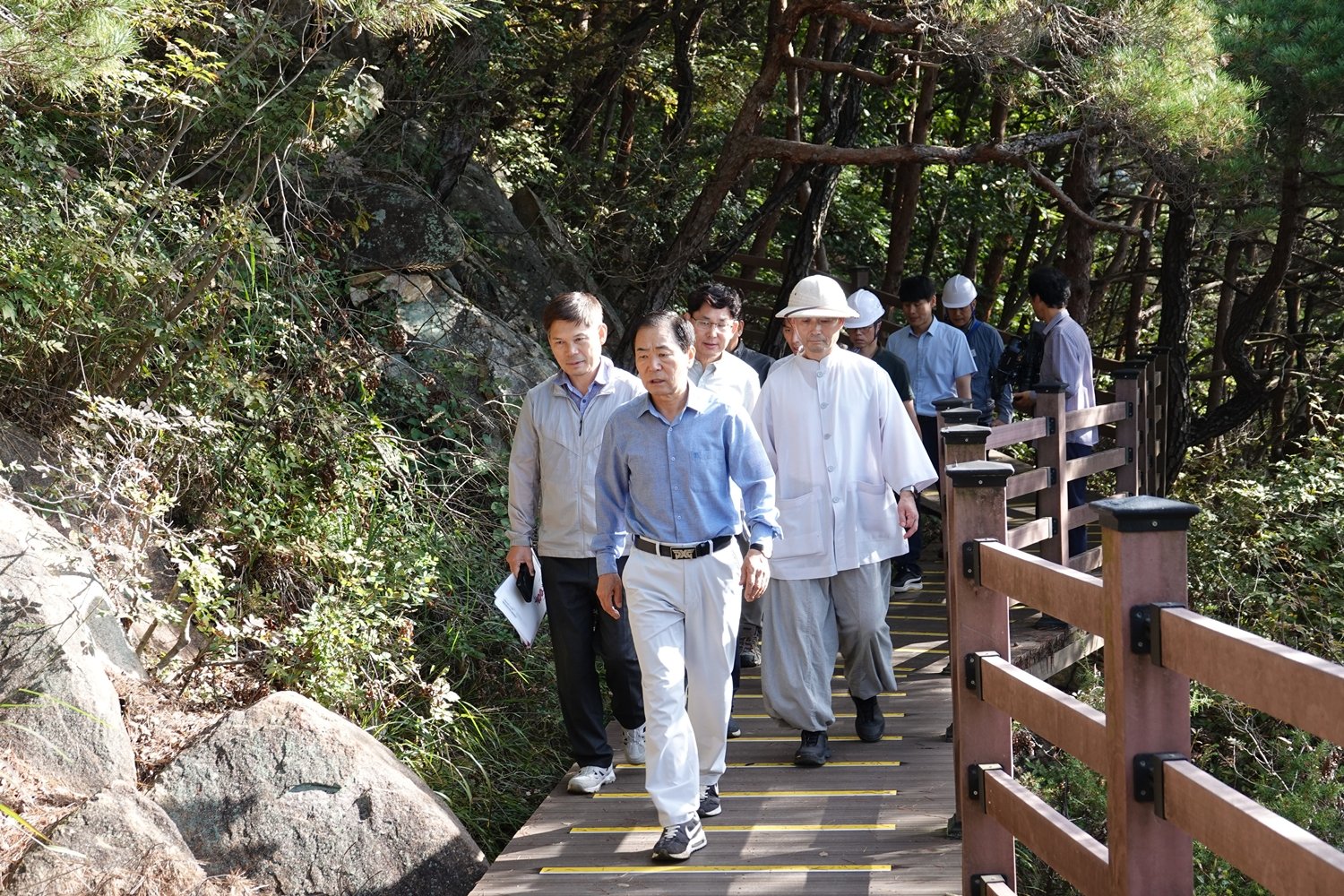(사진제공=창녕군) [PEDIEN] 창녕군의 대표적인 문화유산인 관룡사 용선대 탐방로가 방문객 안전 강화를 목표로 대대적인 정비 작업을 진행 중이다. 성낙인 창녕군수는 최근 공사 현장을 직접 방문해 추진 상황을 점검하고 안전 확보에 만전을 기했다.성 군수는 지난 15일 창녕읍 옥천리 산 328 일원에 위치한 관룡사 용선대 탐방로 정비공사 현장을 찾아 전반적인 진행 상황을 꼼꼼히 살폈다. 이 탐방로는 천년 고찰 관룡사와 국보급 문화재인 용선대를 잇는 중요한 길목이다.이번 정비 사업은 노후화된 시설을 개선하고 탐방객의 안전을 최우선으로 확보하는 데 중점을 뒀다. 주요 공사 내용으로는 기존 데크 보강 및 데크 계단 설치, 안전을 위한 로프 및 목재 난간 설치 등이 포함됐다.특히 미끄럼 방지를 위해 자연석 계단을 정비하고 친환경적인 야자매트를 설치하는 등 세심한 부분까지 신경 쓴 모습이다. 성 군수는 현장 관계자들을 격려하며 공사가 마무리될 때까지 안전 관리에 소홀함이 없도록 당부했다.창녕군은 이번 정비 사업을 통해 관룡사를 찾는 관광객들이 더욱 쾌적하고 안전하게 문화유산을 경험할 수 있을 것으로 기대하고 있다. -