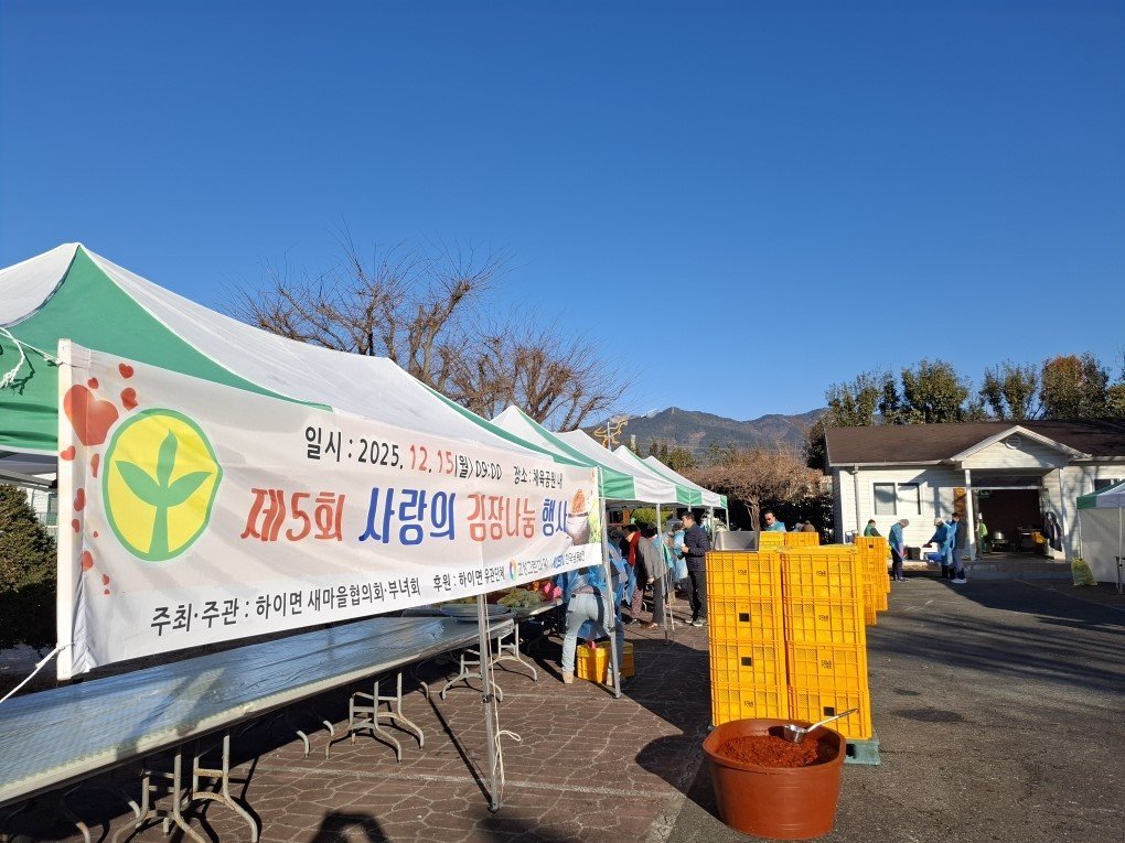 하이면새마을협의회·부녀회 “제5회 사랑의 김장나눔 행사” (경남고성군 제공) [PEDIEN] 고성군 하이면 새마을협의회와 부녀회가 지난 15일, 하이면 체육공원에서 '사랑의 김장 나눔 행사'를 개최했다.올해로 5회째를 맞이하는 이번 행사에는 새마을협의회·부녀회 회원, 한국남동발전, 고성그린파워 관계자 등 50여 명이 참여하여 구슬땀을 흘렸다.행사는 13일부터 절임 배추와 양념 재료를 준비하는 것으로 시작됐다. 행사 당일에는 이른 아침부터 모여 정성껏 김장김치를 버무렸다.이날 담근 김장김치는 독거노인과 어려운 이웃 200여 가구에 전달됐다. 추운 날씨 속에서 따뜻한 온정을 나누는 뜻깊은 시간이었다.백봉기 새마을지도자협의회장은 “김장김치 나눔 행사를 통해 이웃들과 따뜻한 마음을 나눌 수 있어 기쁘다”며, “어려운 이웃들에게 조금이나마 보탬이 되기를 바란다”고 전했다.정종국 하이면장은 “매년 이웃을 위해 봉사하는 새마을지도자 및 새마을부녀회 회원들에게 감사드린다”며, “힘겨운 겨울을 보내는 이웃들에게 도움이 될 수 있도록 지원을 아끼지 않겠다”고 밝혔다.하이면 새마을협의회는 앞으로도 지역사회에 필요한 봉사활동을 꾸준히 이어갈 계획이다. -