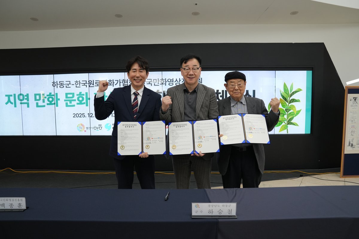 하동군, 만화·웹툰 연계해 지역 문화관광 새 판 연다 (하동군 제공) [PEDIEN] 하동군이 만화·웹툰 분야를 활용해 지역 문화관광 산업에 새로운 활력을 불어넣는다.하동군은 지난 11일 한국만화영상진흥원, 한국원로만화가협회와 국내 만화 발전 및 지역 만화 문화 확산을 위한 업무협약을 체결했다고 밝혔다.이번 협약은 만화와 웹툰이라는 대중적 콘텐츠를 통해 하동의 관광자원을 더욱 효과적으로 활용하고, 지역 문화공간에 새로운 매력을 더하기 위한 취지로 마련됐다.이번 협약의 계기는 하동군이 추진 중인 ‘김양분교 문화공간 조성사업’이다.군은 폐교를 활용한 문화공간에 남녀노소 누구나 친숙하게 즐길 수 있는 추억의 ‘만화방’을 조성하기 위해 한국원로만화가협회에 자문과 협력을 요청했으며, 이를 계기로 만화·웹툰 분야 전반에 대한 협력 체계를 구축하게 됐다.협약에 따라 하동군과 두 기관은 만화와 웹툰을 활용한 관광 콘텐츠 개발, 전시 및 체험 공간 조성, 지역 문화 확산을 위한 다양한 협력 사업을 함께 추진할 계획이다.특히 하동의 자연·역사·문화를 소재로 한 스토리텔링 콘텐츠를 발굴해 지역 홍보와 관광 활성화에 접목한다는 구상이다.한국원로만화가협회와 한국만화영상진흥원은 지방 소도시인 하동군이 만화 콘텐츠를 활용한 문화관광 사업에 나선 점을 매우 의미 있게 평가하며, 향후 사업 추진 과정에서 물심양면의 적극적인 지원을 약속했다.이미 지난 9월에는 한국원로만화가협회 권영섭 회장의 주선으로 국립중앙도서관으로부터 이현세 작가의 작품 전집 등 2천여 권의 만화책이 하동군에 기증되는 성과도 있었다.박진하 관광진흥과장은 “단기적으로는 내년 2월 김양분교 만화방의 본격 운영을 목표로, 유명 작가들의 소장품과 캐릭터 원화 등을 활용한 전시공간과 인테리어 구성을 마무리할 계획”이며, “장기적으로는 하동의 다양한 관광자원을 소재로 스토리 웹툰 제작, 캐릭터 개발, 기념품 제작 등 만화산업과 관광산업을 융합해 지역 관광 활성화의 시너지 효과를 극대화하겠다”라고 밝혔다.한편, 한국원로만화가협회는 국내 만화의 태동기를 이끌어온 1세대 작가들로 구성된 만화계의 핵심 단체이며, 한국만화영상진흥원은 만화의 예술적·교육적·산업적 가치 증대를 목표로 만화박물관, 만화도서관, 웹툰 스타트업 캠퍼스 등 다양한 인프라를 갖춘 세계적인 만화 전문 기관이다. -