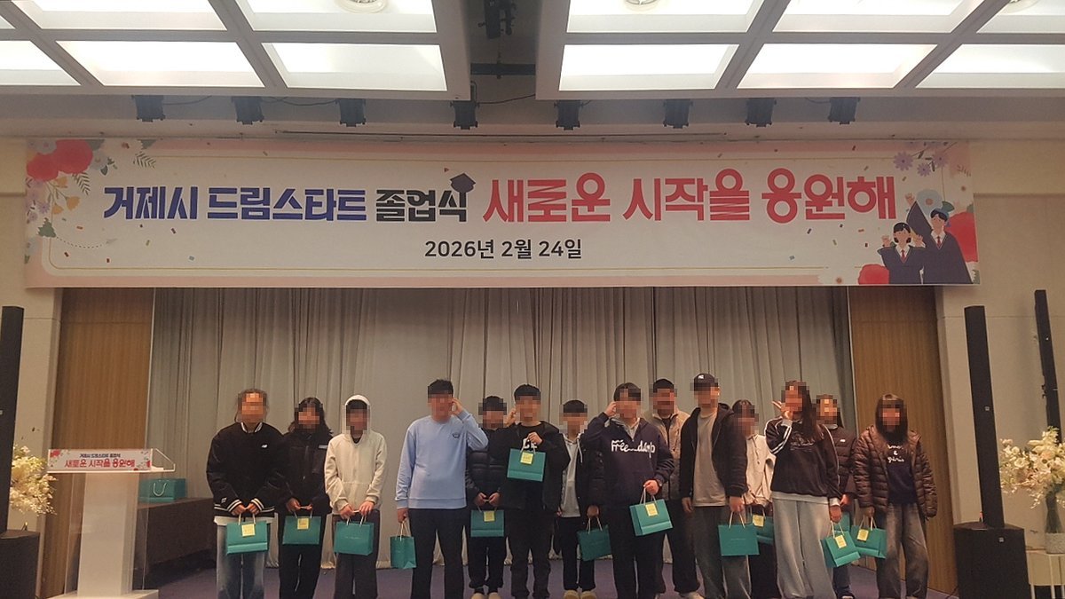 거제시 드림스타트, 2026년 드림스타트 졸업식 실시 (거제시 제공) [PEDIEN] 거제시 드림스타트가 지난 24일 거제삼성호텔에서 졸업식을 개최했다.드림스타트 가족 94명이 참석한 이번 졸업식은 중학교 입학을 앞두고 사례 관리가 종료되는 아동들의 새로운 시작을 응원하기 위해 마련됐다.특히 사춘기 자녀와 부모 간의 원활한 소통을 돕는 가족 관계 개선 교육이 진행되어 의미를 더했다.졸업식에 참여한 한 아동은 드림스타트 프로그램에 참여하며 행복했던 추억을 회상하며 아쉬움을 드러냈다. 다양한 프로그램으로 구성된 졸업식에 대한 만족감을 표현하며 잊지 못할 경험이 되었다고 소감을 밝혔다.주현지 아동청소년과장은 졸업생들이 새로운 환경에 잘 적응하기를 바란다는 응원의 메시지를 전달했다. 앞으로도 아동들이 건강하고 행복하게 성장할 수 있도록 지속적으로 노력할 것을 약속했다.한편 거제시 드림스타트는 만 12세 이하 취약계층 아동에게 학습 지원, 심리 상담, 문화 체험 등 맞춤형 통합 서비스를 제공하고 있다. 자세한 사항은 거제시 아동청소년과 돌봄드림스타트팀에 문의하면 된다. -