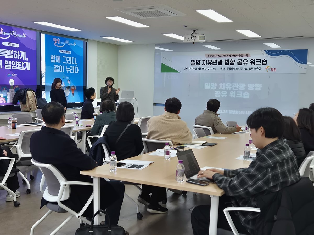 밀양시, 치유관광 방향 공유 워크숍 개최 (밀양시 제공) [PEDIEN] 밀양시가 지역 특색을 살린 차별화된 치유관광 모델 구축에 본격적으로 나선다.시는 지난 25일 밀양햇살도시관 창작교육실에서 지역 활동가 및 관련 기관 관계자 18명이 참석한 가운데 '밀양 치유관광 방향 공유 워크숍'을 개최했다고 밝혔다. 이번 워크숍은 2026년 4월 시행 예정인 '치유관광산업 육성에 관한 법률'에 선제적으로 대응하고, 밀양만의 강점을 활용한 특색 있는 치유관광 모델을 만들기 위해 마련됐다.특히 이번 워크숍은 기존의 행정 주도 방식을 벗어나 민간 주체와 함께 '밀양다운 치유'의 개념과 실행 방향을 논의하는 참여형 방식으로 진행되어 의미를 더했다. ㈜쥬스컴퍼니 이한호 대표와 ㈜유니에스Inc. 한은희 대표 등 치유관광 분야 전문가들이 강연자로 나서 정책 동향 및 준비 과제, 국내 우수사례를 공유하며 참석자들의 이해를 도왔다.시는 현재 체류형 치유관광 구조로의 전환을 핵심 목표로 삼고 치유관광 마스터플랜 수립을 추진 중이다. 이경숙 관광진흥과장은 “치유관광은 민간이 주도하고 행정이 뒷받침하는 구조가 되어야 한다”며 워크숍에서 제안된 현장의 목소리를 마스터플랜에 적극 반영해 밀양만의 치유관광 방향을 구체화해나갈 것이라고 밝혔다.이번 워크숍을 통해 밀양시는 지역의 숨겨진 매력을 발굴하고, 이를 치유관광 상품과 연계하여 관광객들에게 특별한 경험을 제공할 계획이다. 또한, 지역 경제 활성화에도 크게 기여할 것으로 기대된다. -