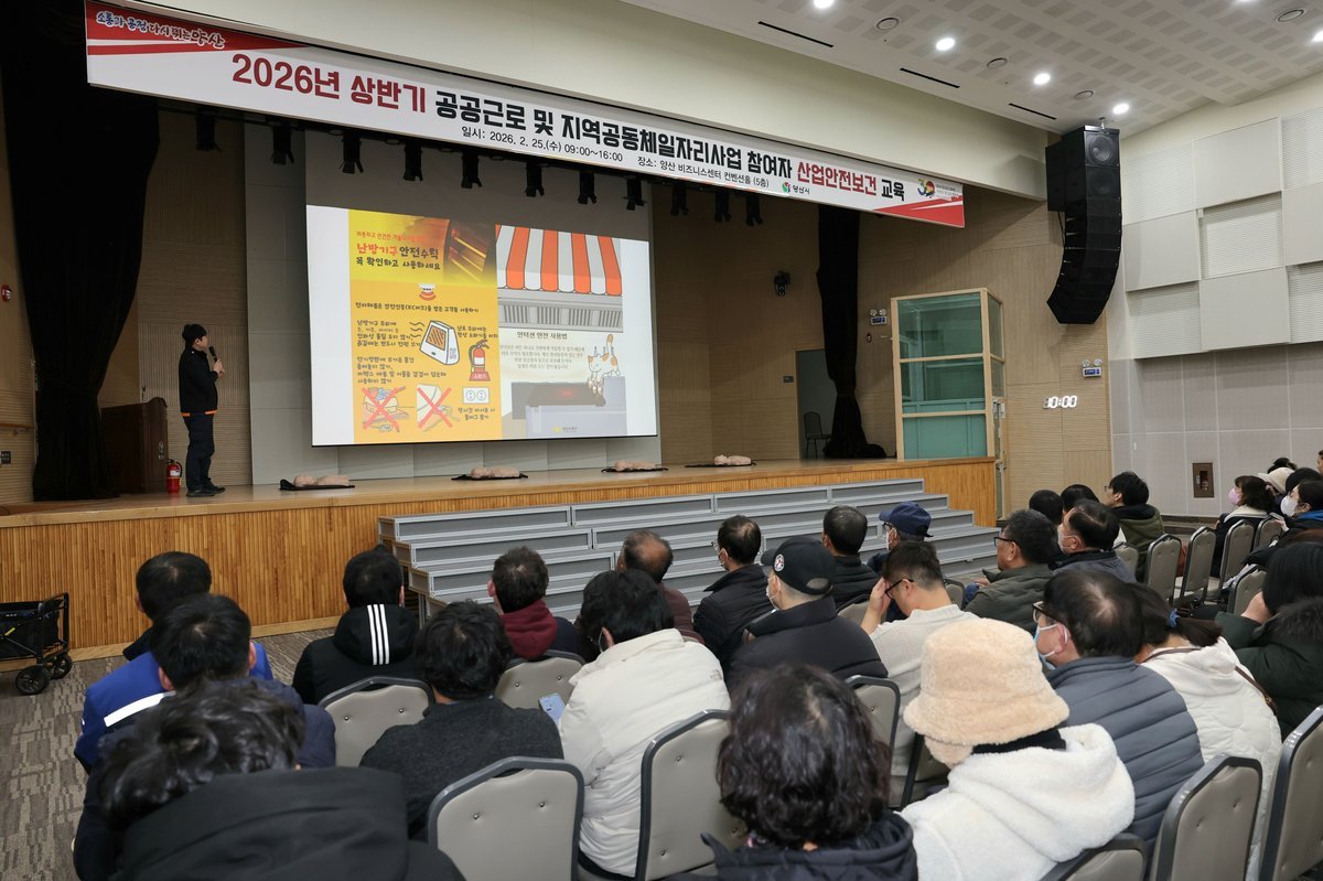 양산시, 공공근로·지역공동체 일자리 안전보건교육 (양산시 제공) [PEDIEN] 양산시가 2026년 상반기 공공근로 및 지역공동체 일자리사업 참여자 333명을 대상으로 안전보건교육을 실시했다.이번 교육은 양산비즈니스센터 컨벤션홀에서 진행되었으며, 공공일자리사업 참여자들의 안전 의식 고취와 사고 예방을 위해 마련되었다.특히 현장 업무 비중이 높은 사업 특성을 고려하여, 근로자들이 실제 위험 요소를 인지하고 대처할 수 있도록 맞춤형 교육으로 진행되었다.산업안전보건공단 박선영 강사는 실제 근로 현장에서 발생했던 재해 사례를 분석하고 공유하며 작업 전 점검 수칙 준수의 중요성을 강조했다. 또한 산업재해 발생 시 처리 절차 등을 상세히 설명하여 참여자들의 이해를 도왔다.양산소방서의 협조로 응급 상황 발생 시 신속하게 대처할 수 있도록 심폐소생술 등 응급처치 교육도 함께 진행되었다. 참여자들은 이론 교육과 실습을 통해 위기 대처 능력을 향상시키는 시간을 가졌다.양산시는 이번 교육을 통해 공공일자리사업 참여자들이 안전한 환경에서 근무할 수 있도록 지원하고, 사업 기간 중 안전사고 발생을 최소화하는 데 기여할 것으로 기대한다.시 관계자는 “이번 교육이 안전사고 예방에 실질적인 도움이 되기를 바라며, 앞으로도 안전한 근무 환경 조성을 위해 최선을 다하겠다”고 밝혔다. -