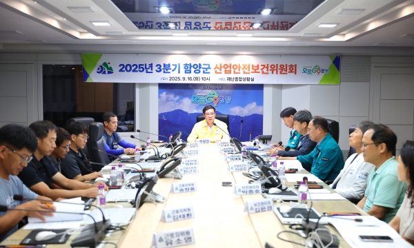 함양군, 2025년 3분기 산업안전보건위원회 개최 [PEDIEN] 함양군은 9월 16일 오전 군청 재난종합상황실에서 ‘2025년 3분기 산업안전보건위원회’를 열고 사업장 안전 및 보건과 관련한 주요 안건을 심의·의결했다. 이번 위원회는 ‘산업안전보건법’ 제24조에 따라 노·사 대표위원 및 관계자 등 총 14명이 참석한 가운데 △2025년 근골격계 부담 작업 유해 요인 조사 △2025년 상반기 의무 사항 이행점검 결과 보고의 건을 심의했으며 이어 2025년 산업재해 현황 및 동향 보고도 진행됐다. 함양군 산업안전보건위원회는 군 소속 현업종사자의 안전과 보건을 확보하기 위한 기구로 산업재해를 예방하고 근로자의 건강 증진 및 안전한 작업환경 조성을 목적으로 운영되고 있다. 위원회는 근로자 위원과 사용자 위원 각 7명씩 총 14명으로 구성돼 있다. 특히 함양군은 군수가 안전보건 책임 주체가 되어 산업안전보건법에 따른 현업근로자의 안전 확보뿐 아니라 민간 사업장에도 산업재해 예방 홍보와 안전 활동을 적극 지원하고 있다. 이를 위해 안전총괄과와 중대재해담당 소속의 안전·보건 관리자가 중심이 되어 체계적인 관리 체계를 운영 중이다. 진병영 함양군수는 “현장에서 사소한 ‘아차 사고’라도 지나치지 않고 즉시 조치하는 습관이 안전을 지킨다”며 “산업재해 예방은 곧 나와 동료의 건강을 지키는 일임을 명심하고 안전한 일터를 다 함께 만들어 가자”고 강조했다. 이어 “다가오는 추석 명절에 가족 모두 건강과 행복, 웃음이 가득하기를 바란다”고 덧붙였다. -