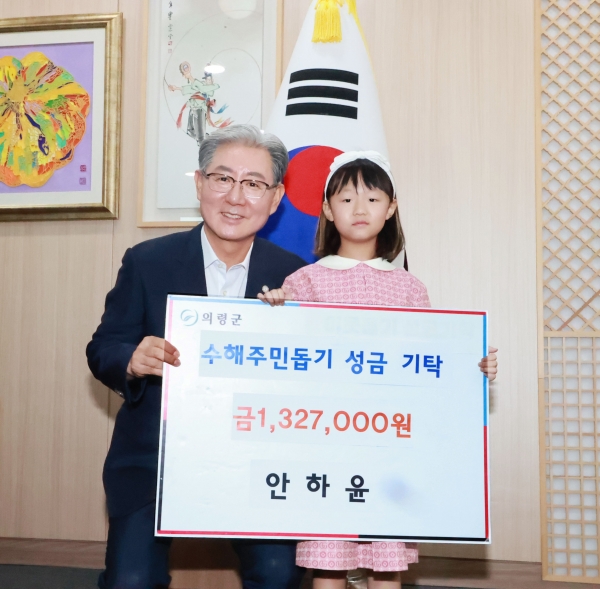 오태완 군수는 “의령군 최연소 기부자로 이름을 올린 안하윤 어린이의 앞날을 응원한다”며 “6살 어린이의 순수한 마음이 수재민들에게 큰 위로가 될 것”이라고 감사의 마음을 전했다.