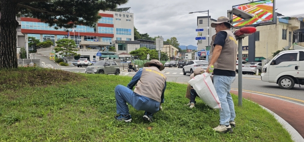 지난 9월 12일에 교육생 27명이 조를 이뤄 군청 정원과 하동읍 예쁜거리 일원에서 현장실습을 병행한 봉사 활동에 참여했다.